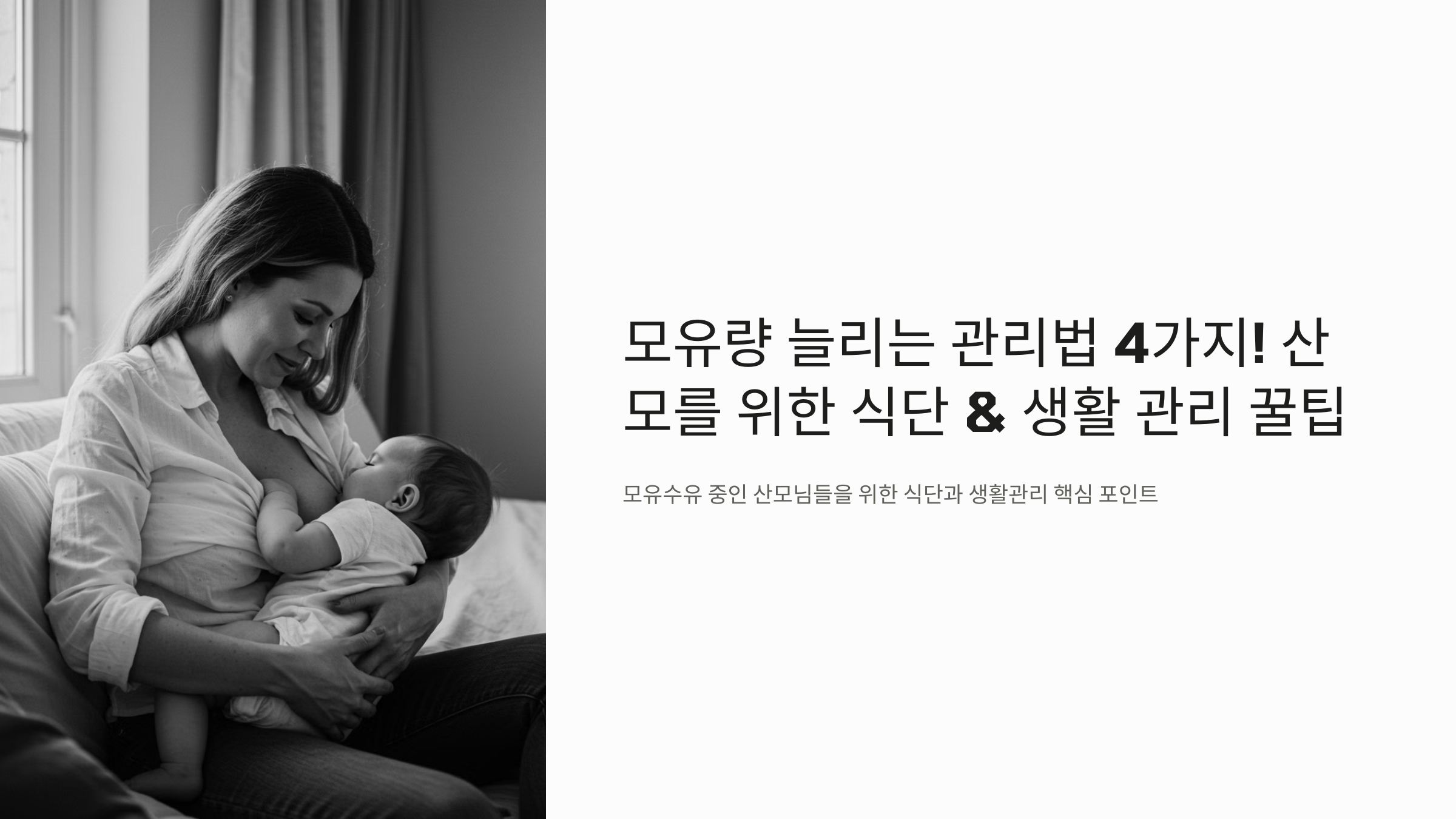 안녕하세요~ 오늘은 모유수유 중인 산모님들이 가장 궁금해하는 식단과 생활관리에 대해 알아볼게요! 모유량을 늘리고 영양가 높은 모유를 만들기 위한 핵심 포인트를 정리했어요.