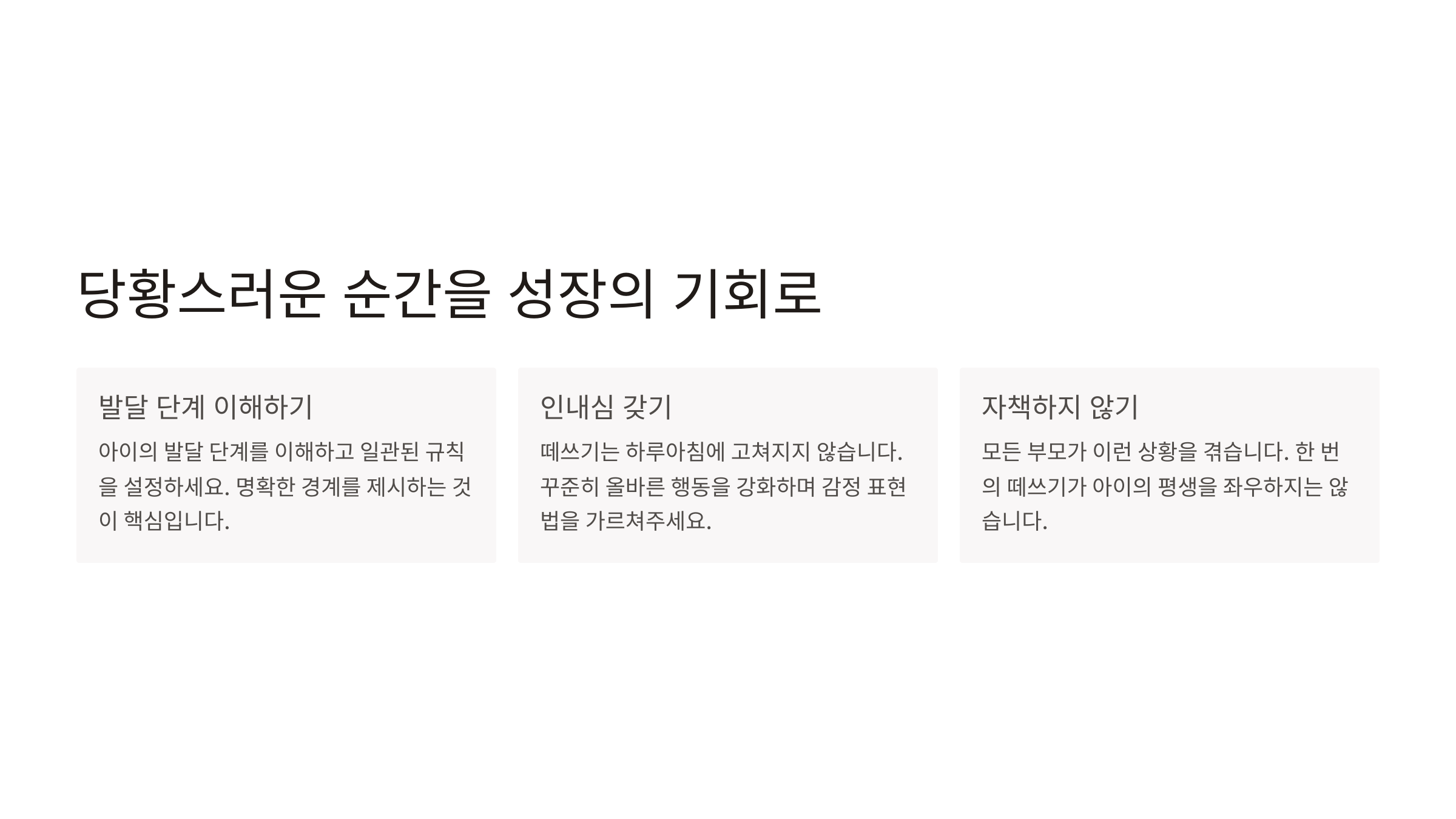 모든 부모가 이런 상황을 겪고 있다는 걸 기억하면서, 너무 자책하지 마세요. 한 번의 떼쓰기가 아이의 평생을 좌우하지는 않습니다. 중요한 것은 일관된 접근법으로 차분하게 대응하는 것입니다.