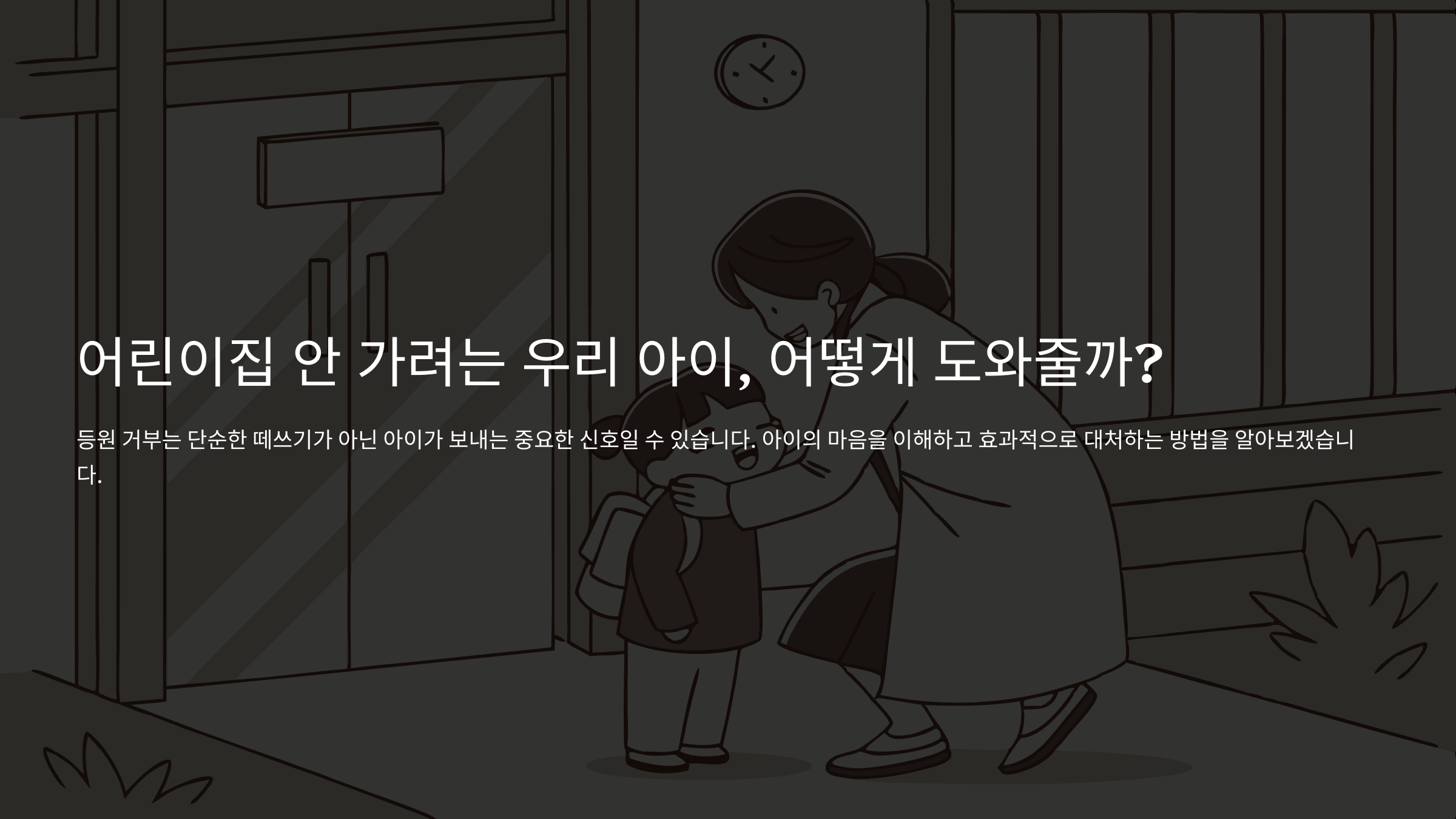 아이의 등원 거부를 단순한 문제 행동으로 보기보다는, 아이가 새로운 환경에 적응하고 성장해가는 과정의 일부로 이해하는 태도가 필요합니다. 인내심을 갖고 일관된 태도로 지원해주세요. 때로는 전문가의 도움을 구하는 것도 좋은 방법입니다.
