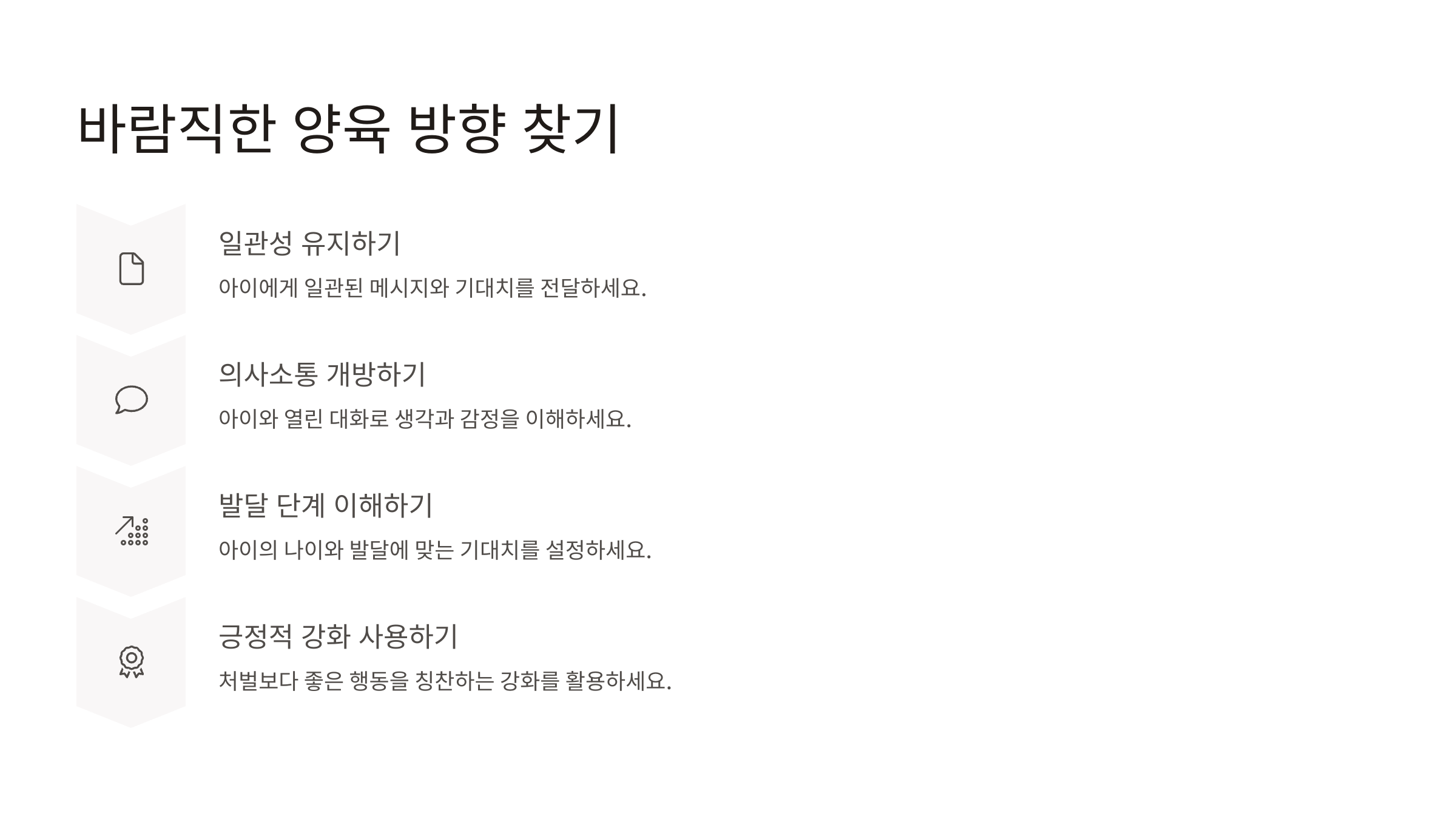 - 합리적인 경계 설정: 아이의 발달 특성과 능력에 맞는 규칙 설정하기
