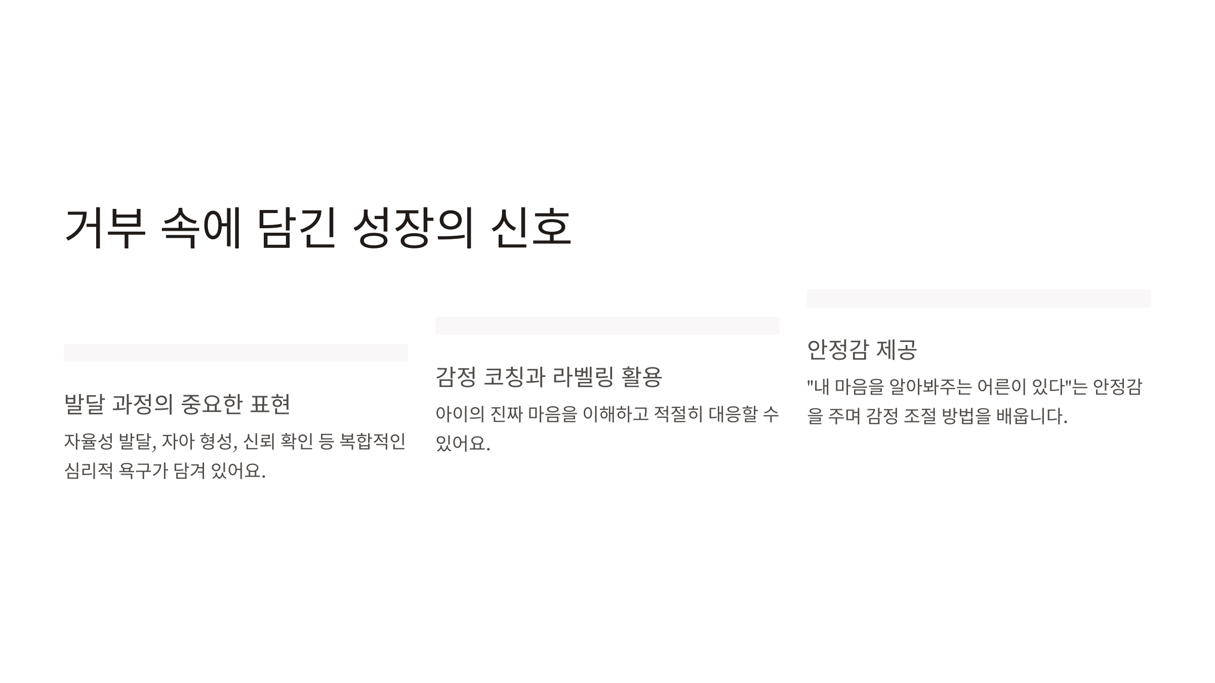 아이는 감정을 말로 표현하는 데 익숙하지 않기 때문에, 부모는 아이의 말보다는 얼굴 표정, 눈빛, 입술의 움직임, 눈썹의 긴장감을 통해 진짜 감정을 읽어내야 해요.