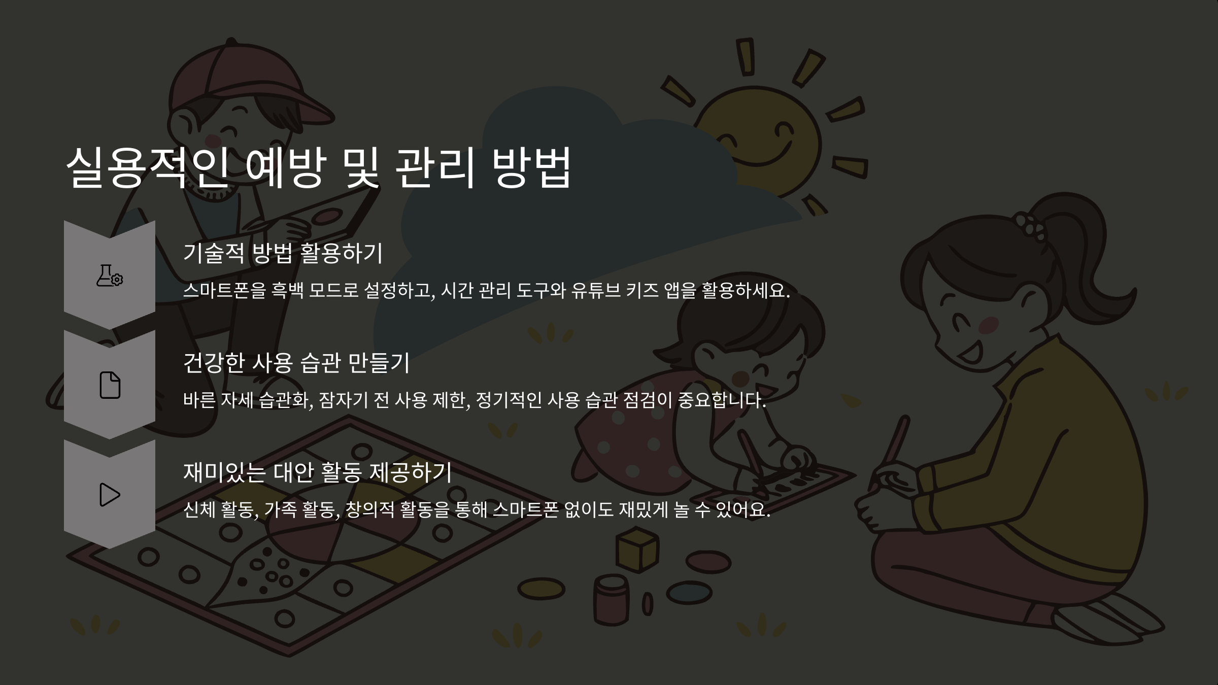 유튜브와 스마트폰은 현대 사회에서 피할 수 없는 일부가 되었지만, 아이들의 건강한 발달을 위해서는 균형 잡힌 사용이 필수예요. 디지털 미디어 사용에 대한 명확한 규칙을 설정하고, 부모가 먼저 모범을 보이며, 다양한 대안 활동을 제공함으로써 유튜브 중독을 예방할 수 있습니다.