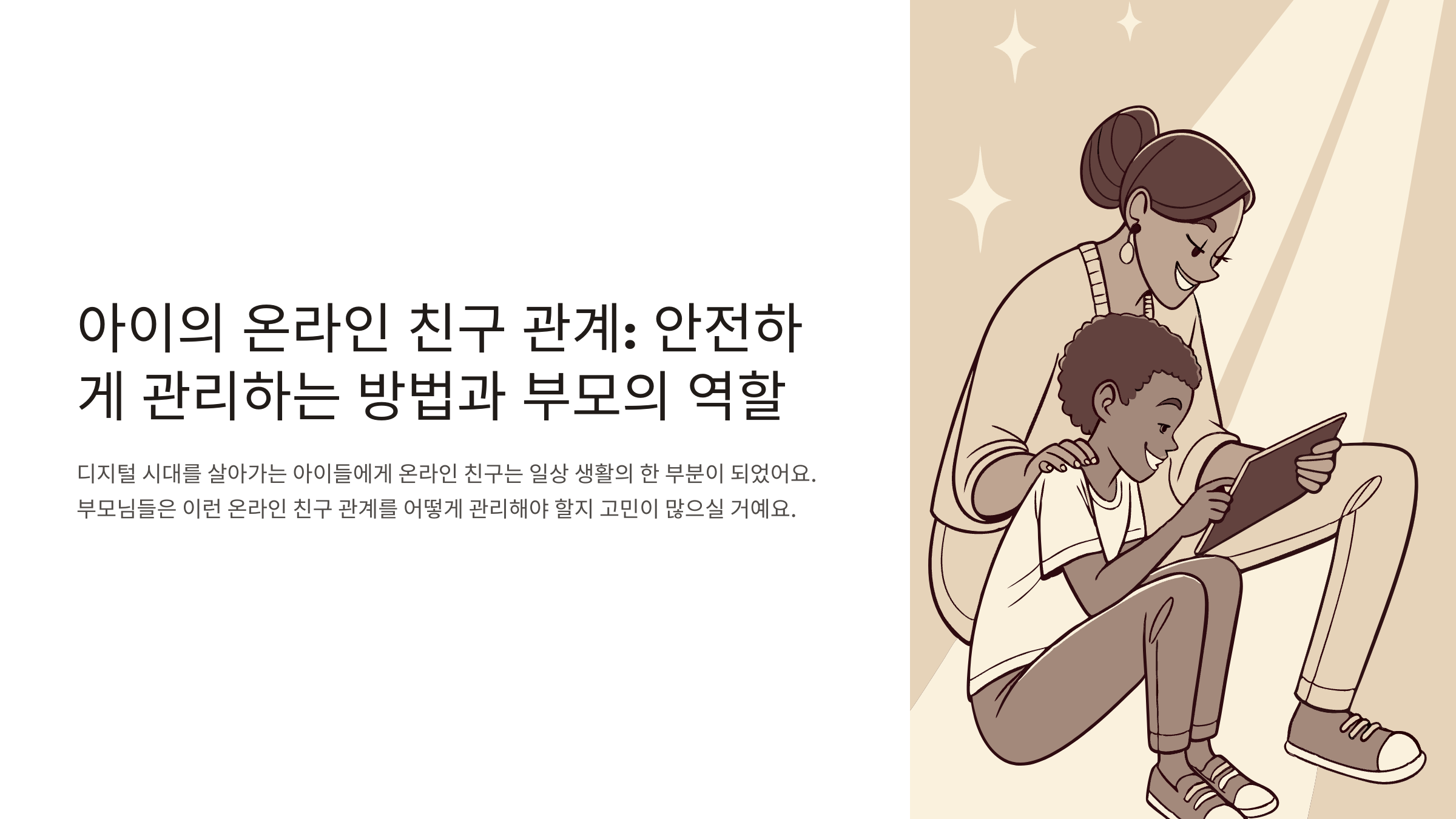디지털 시대를 살아가는 요즘 아이들에게 온라인 친구는 이제 일상 생활의 한 부분이 되었어요. 아이들은 게임, SNS, 메신저 앱 등을 통해 새로운 친구를 사귀고 소통하고 있죠. 부모님들은 이런 온라인 친구 관계를 어디까지 허용하고 어떻게 관리해야 할지 고민이 많으실 거예요. 오늘은 아이들의 온라인 친구 관계의 장단점과 연령별 관리 방법, 그리고 부모님의 역할에 대해 알아보겠습니다.