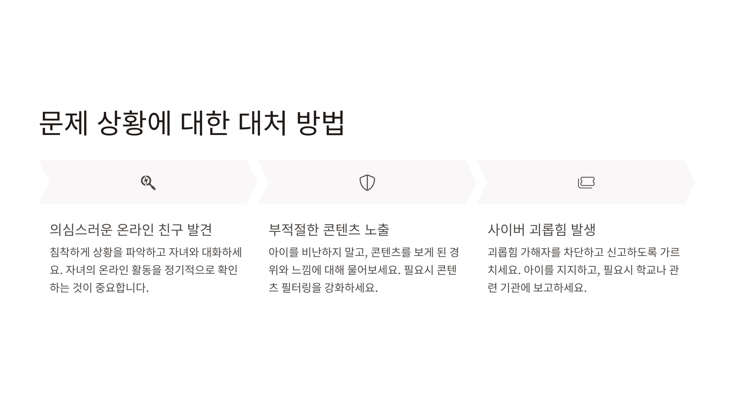 - 불편하거나 이상한 콘텐츠를 봤다면 부모님에게 알리기