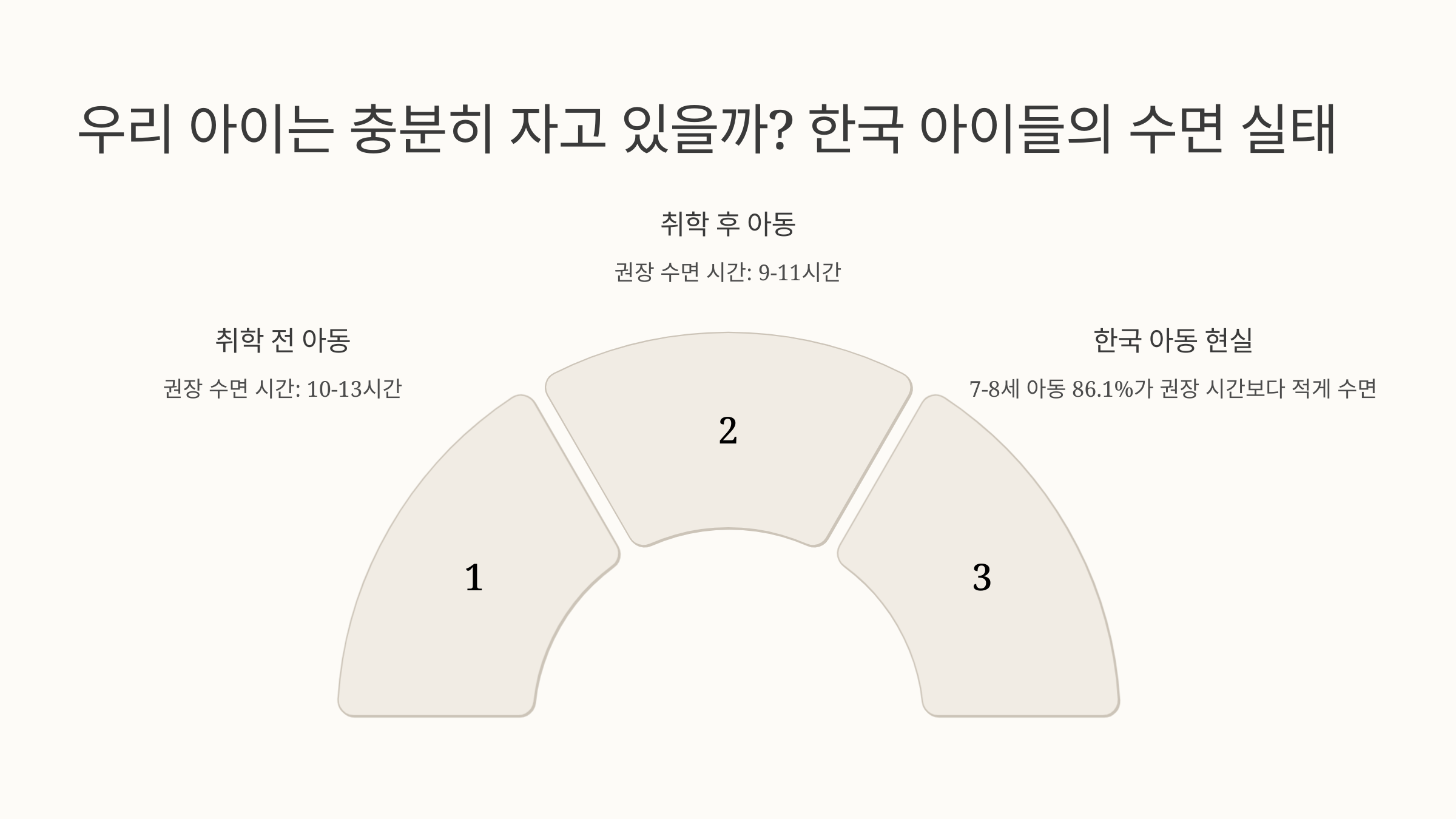 그런데 안타깝게도 연구에 따르면 한국의 7-8세 아동 중 무려 86.1%가 권장 수면 시간인 9시간보다 적은 시간 동안 자고 있다고 해요. 이는 한국 아이들이 전반적으로 수면 부족 상태에 있음을 보여주는 통계입니다.