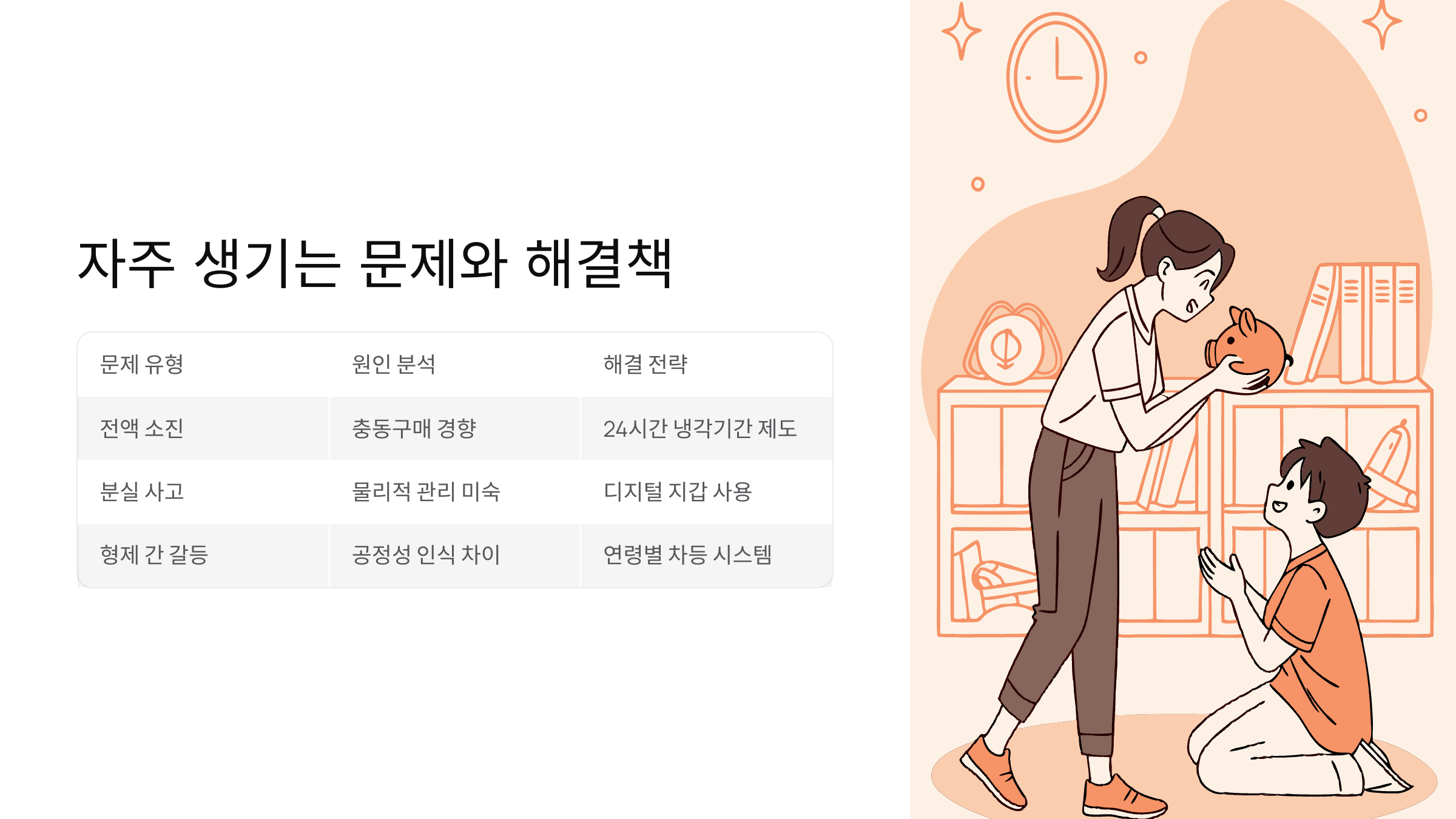 아이들의 용돈 관리에서 흔히 발생하는 문제들이 있어요: