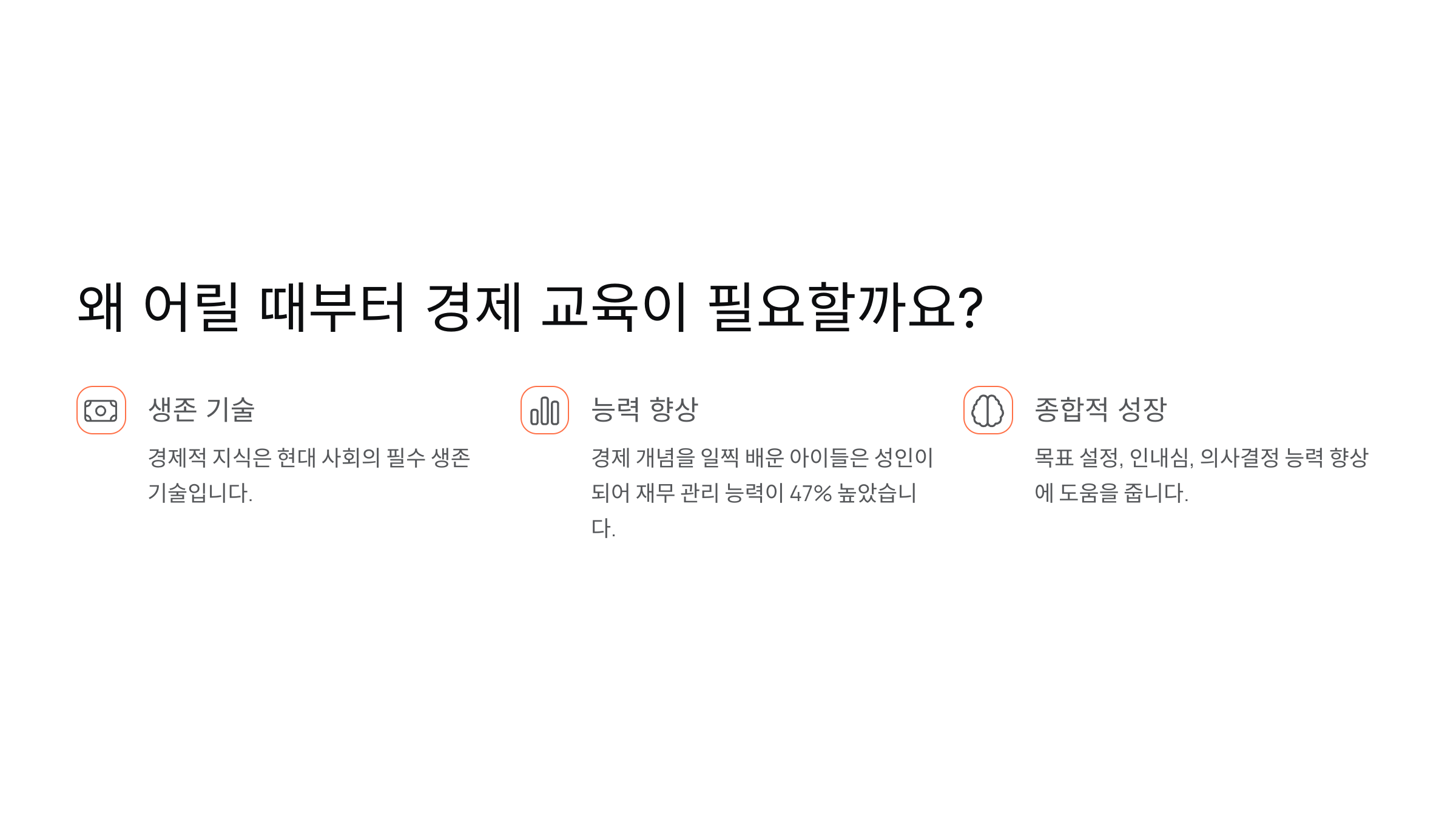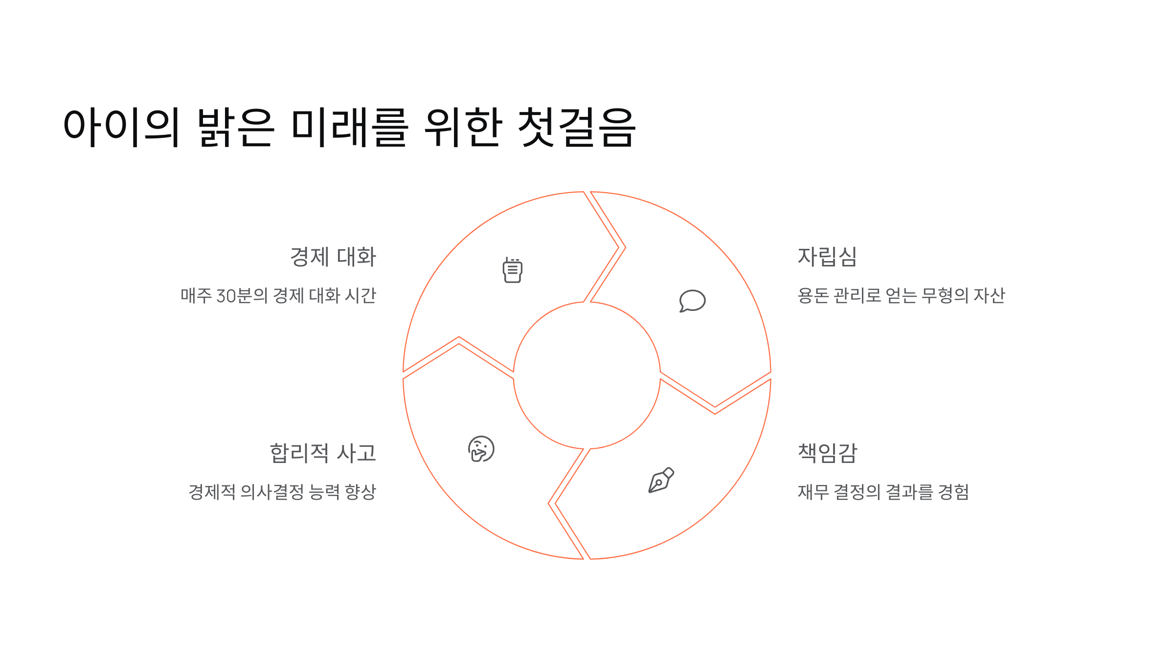 경제 교육은 단순히 돈을 관리하는 기술만이 아니라 목표 설정, 인내심 기르기, 의사결정 능력 향상 등 종합적인 성장을 도와줍니다.