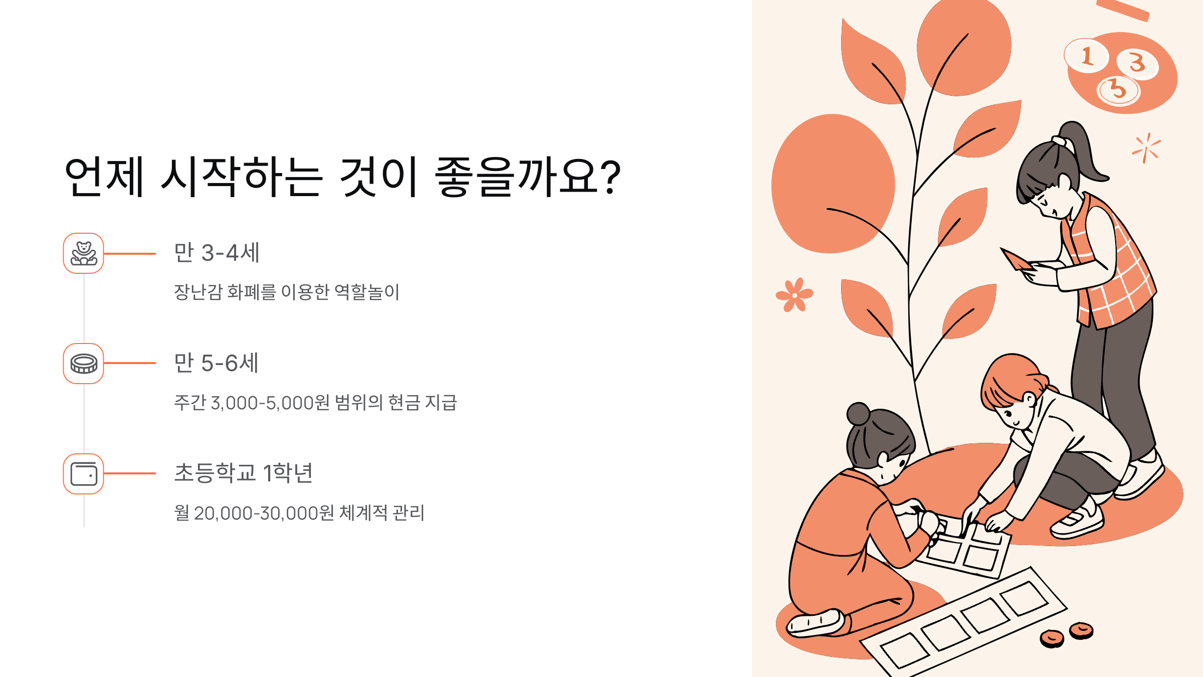 - 만 3-4세: 장난감 화폐를 이용한 역할놀이
