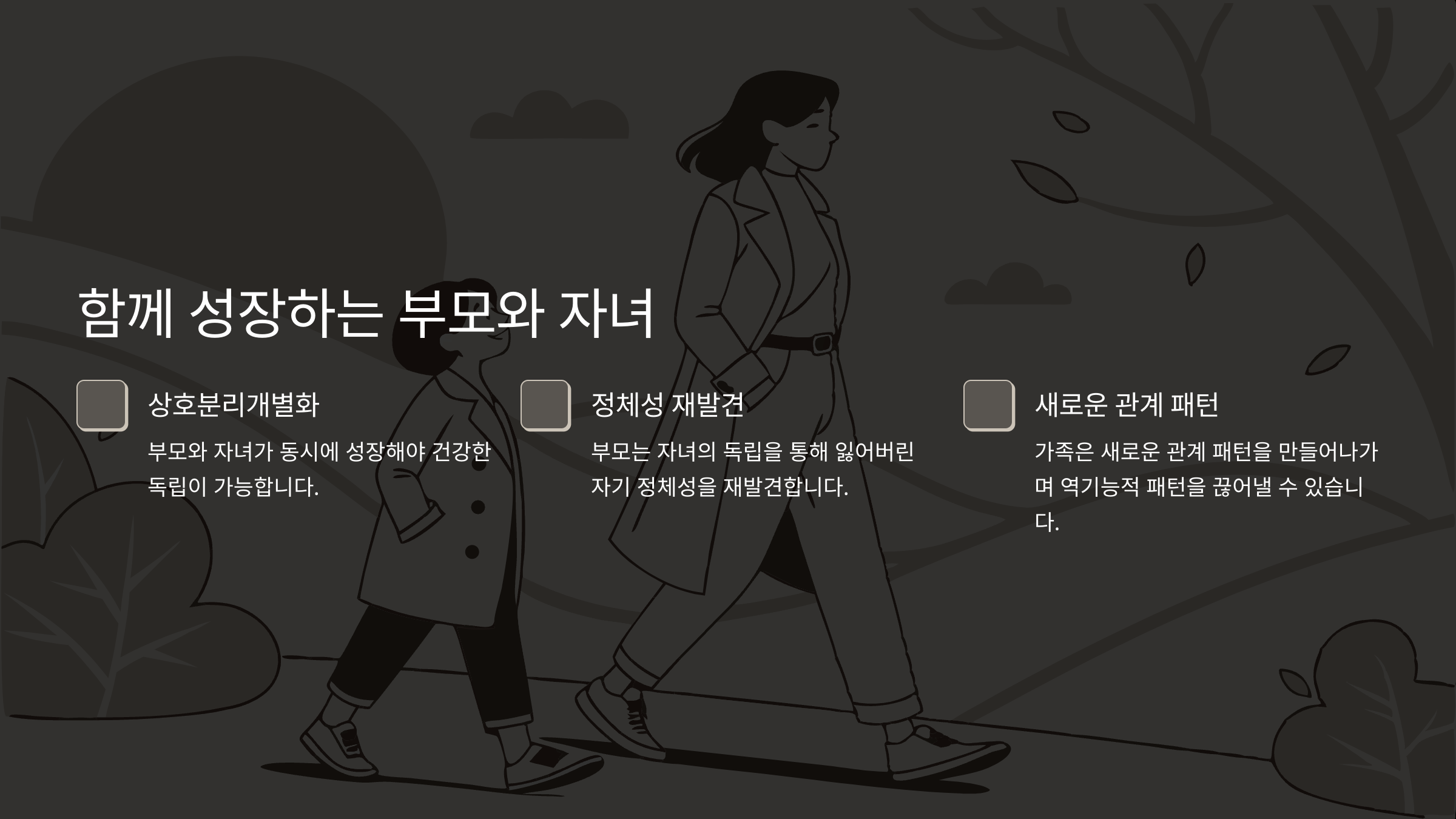 부모는 자녀의 독립을 통해 잃어버린 자기 정체성을 재발견하고, 자녀는 부모의 성장을 관찰하며 자연스럽게 독립 모델을 학습하게 됩니다. 이 상호작용 과정에서 가족은 새로운 관계 패턴을 만들어나가며, 궁극적으로 세대 간 전이되는 역기능적 패턴을 끊어낼 수 있습니다.