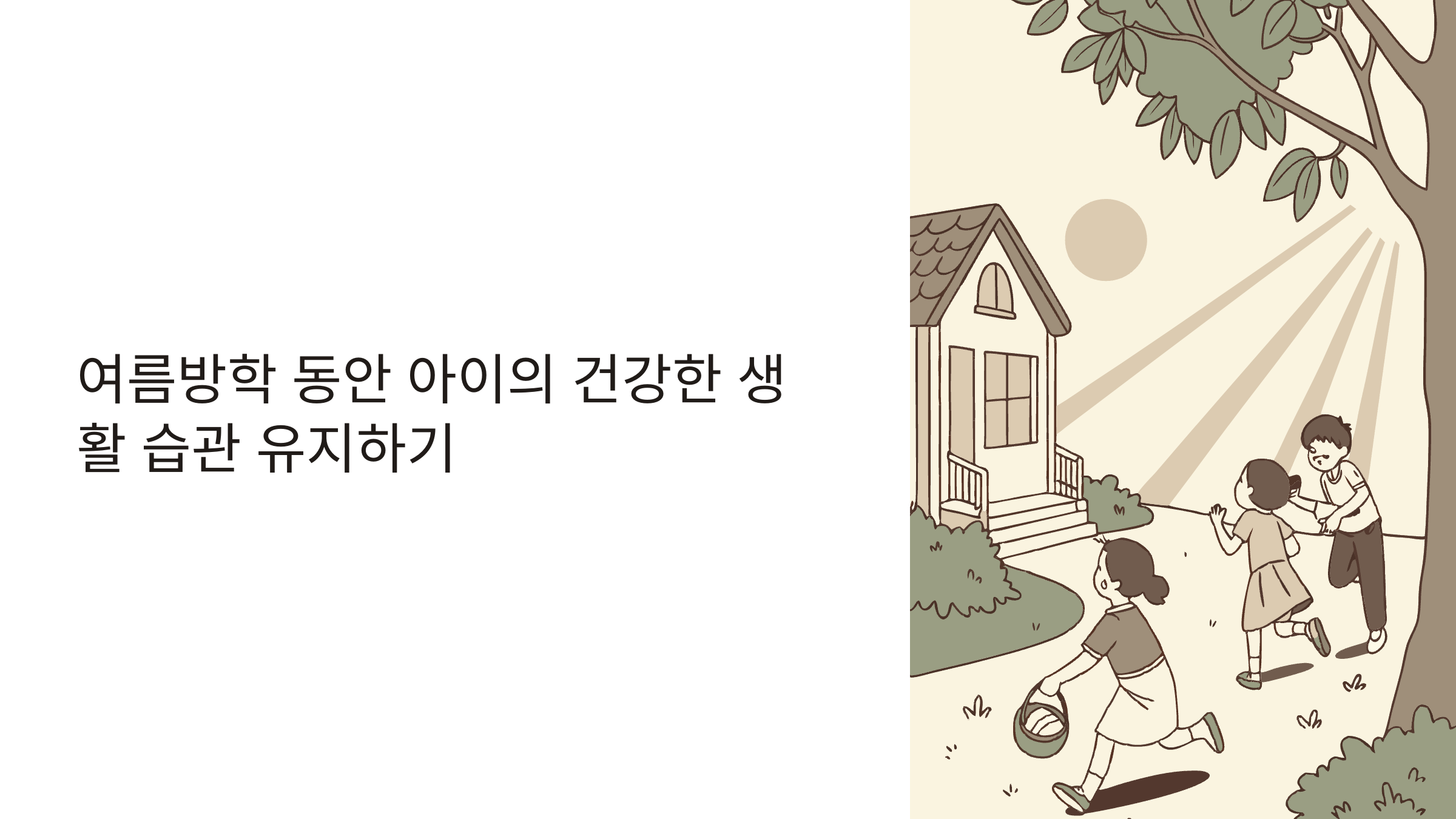 아이들에게 여름방학은 학교에서 벗어나 마음껏 놀 수 있는 꿈같은 시간이지만, 부모 입장에선 고민이 시작되는 시기이기도 해요. 규칙적인 생활 리듬이 깨지면서 학습 손실은 물론 아이의 신체적, 정신적 건강에도 영향을 미칠 수 있거든요. 하지만 걱정 마세요! 오늘은 여름방학 동안 아이들의 건강한 생활 습관을 어떻게 유지하고 관리할 수 있는지 실질적인 방법들을 알려드릴게요.