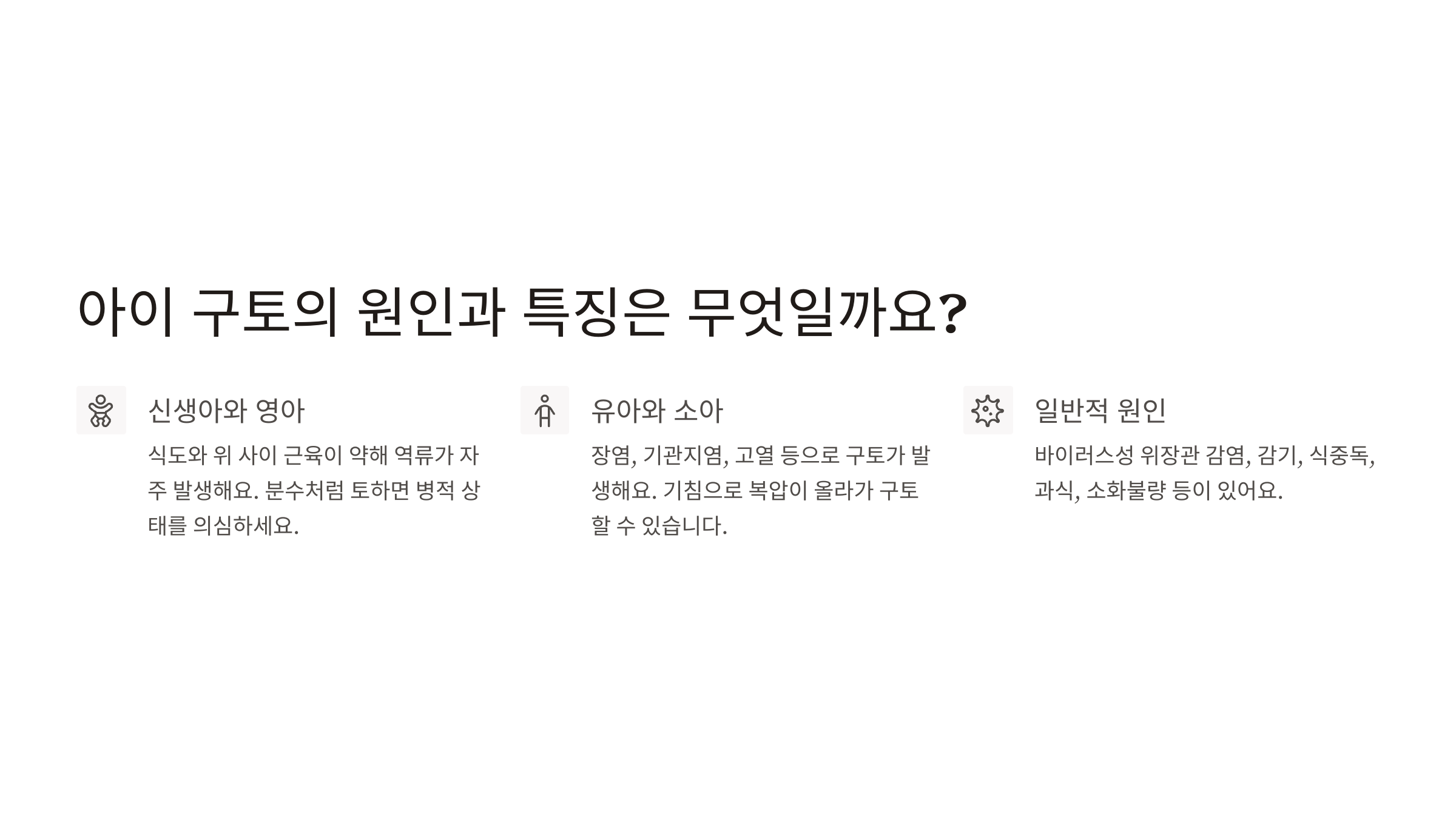 구토의 원인은 아이의 나이에 따라 다양하게 나타날 수 있어요.