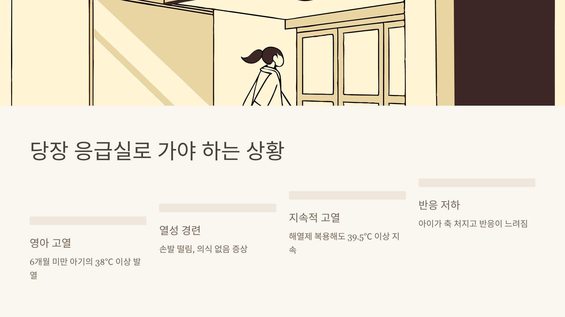 - 고열이 3일 이상 지속되거나 열성 경련이 있으면 병원 방문이 필요합니다