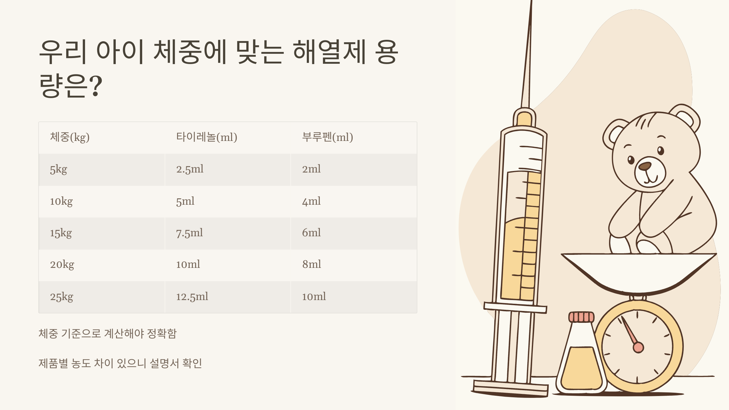 해열제 복용량은 나이보다 체중을 기준으로 계산해야 정확합니다.