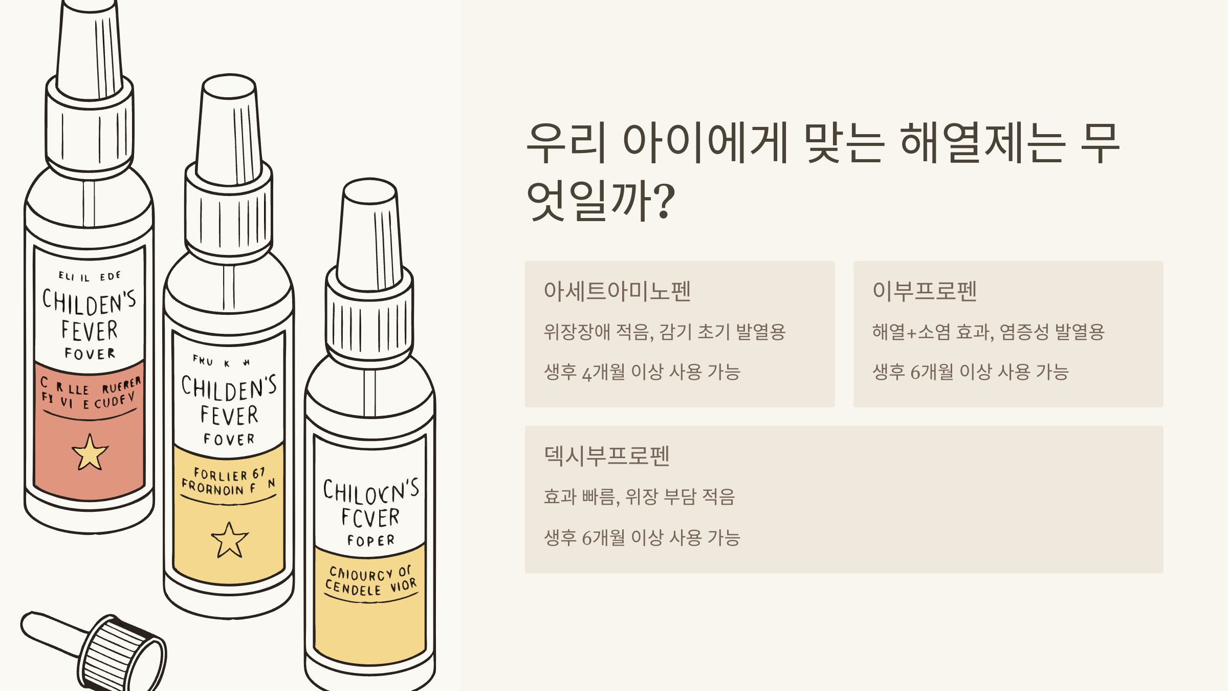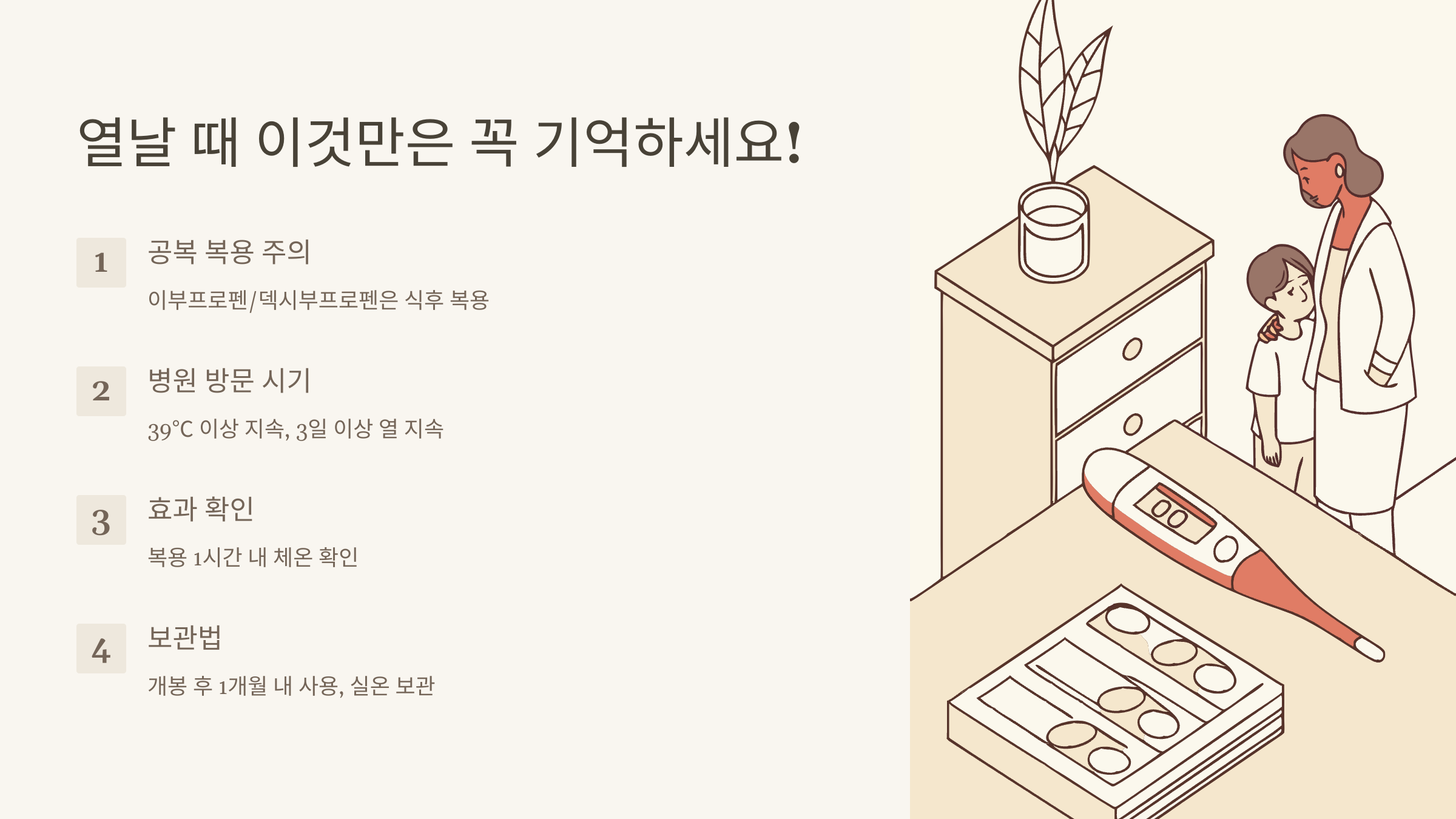 해열제를 올바르게 사용하면 아이의 불편함을 줄이고, 빠르게 회복을 도울 수 있습니다!