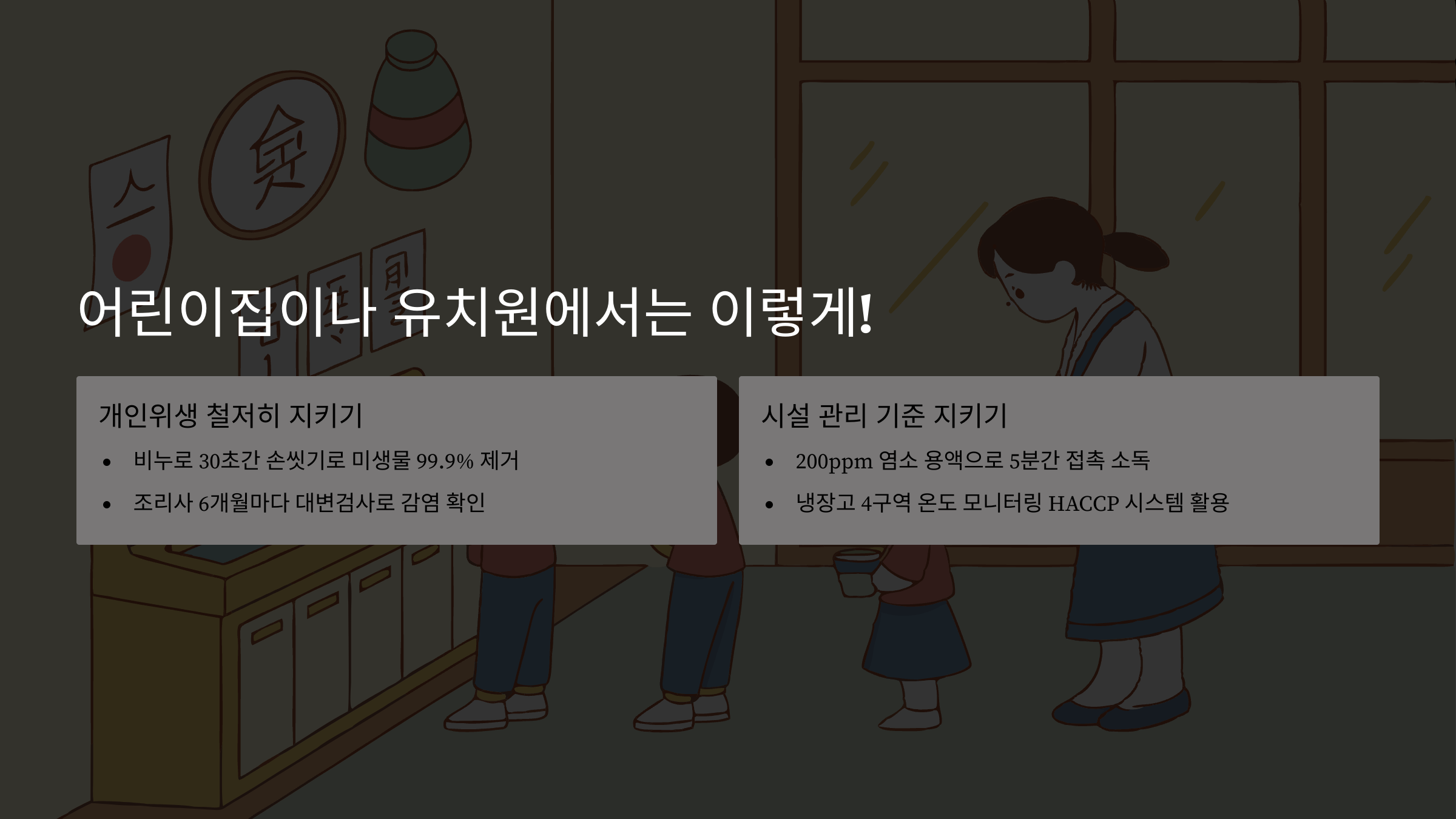 무엇보다 중요한 건 일상에서의 꾸준한 실천이에요. 아이들에게도 올바른 손씻기와 식품 위생 개념을 가르쳐 주시면 좋겠어요. 그리고 의심되는 증상이 나타나면 주저하지 말고 병원을 찾아주세요.