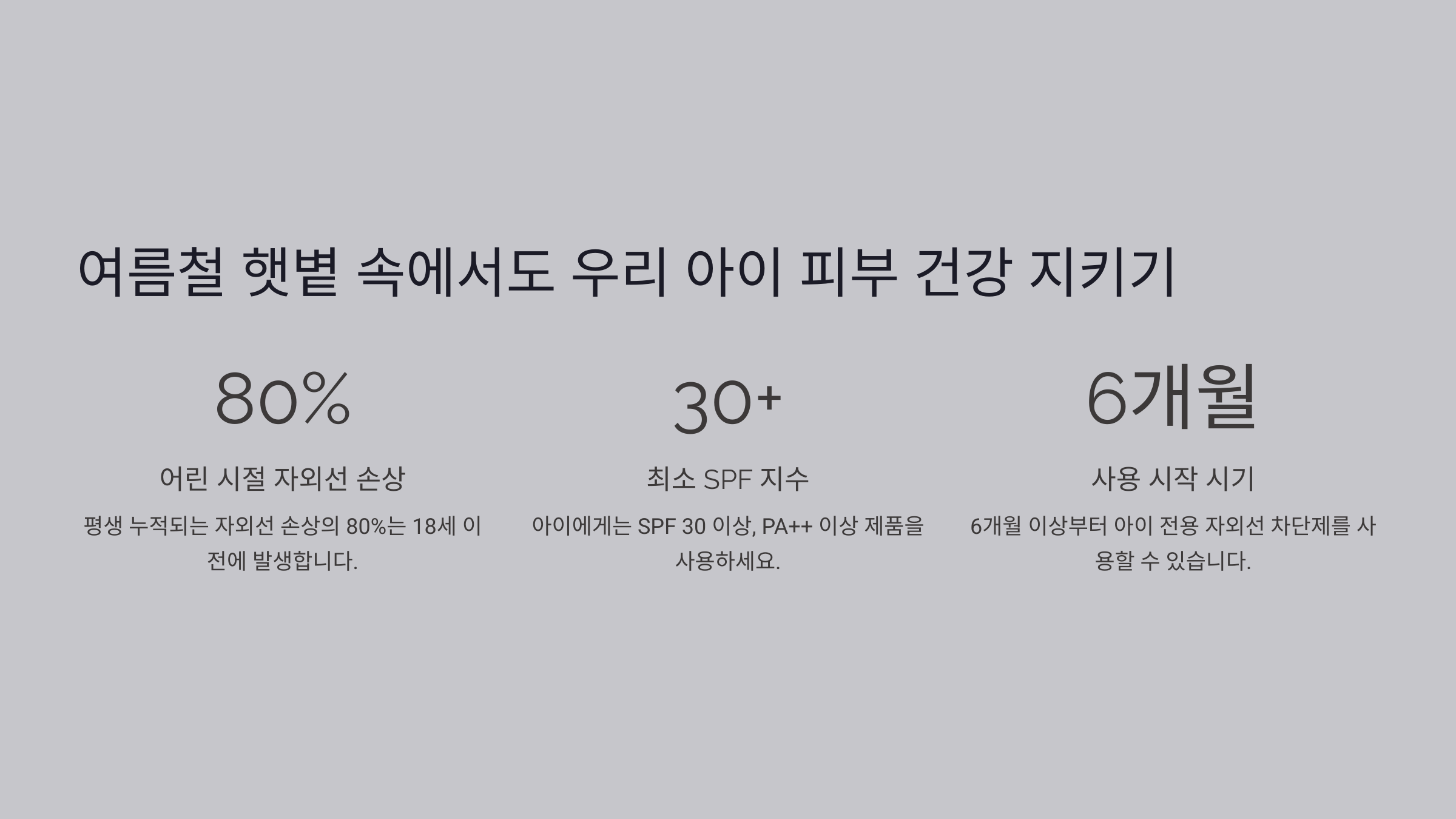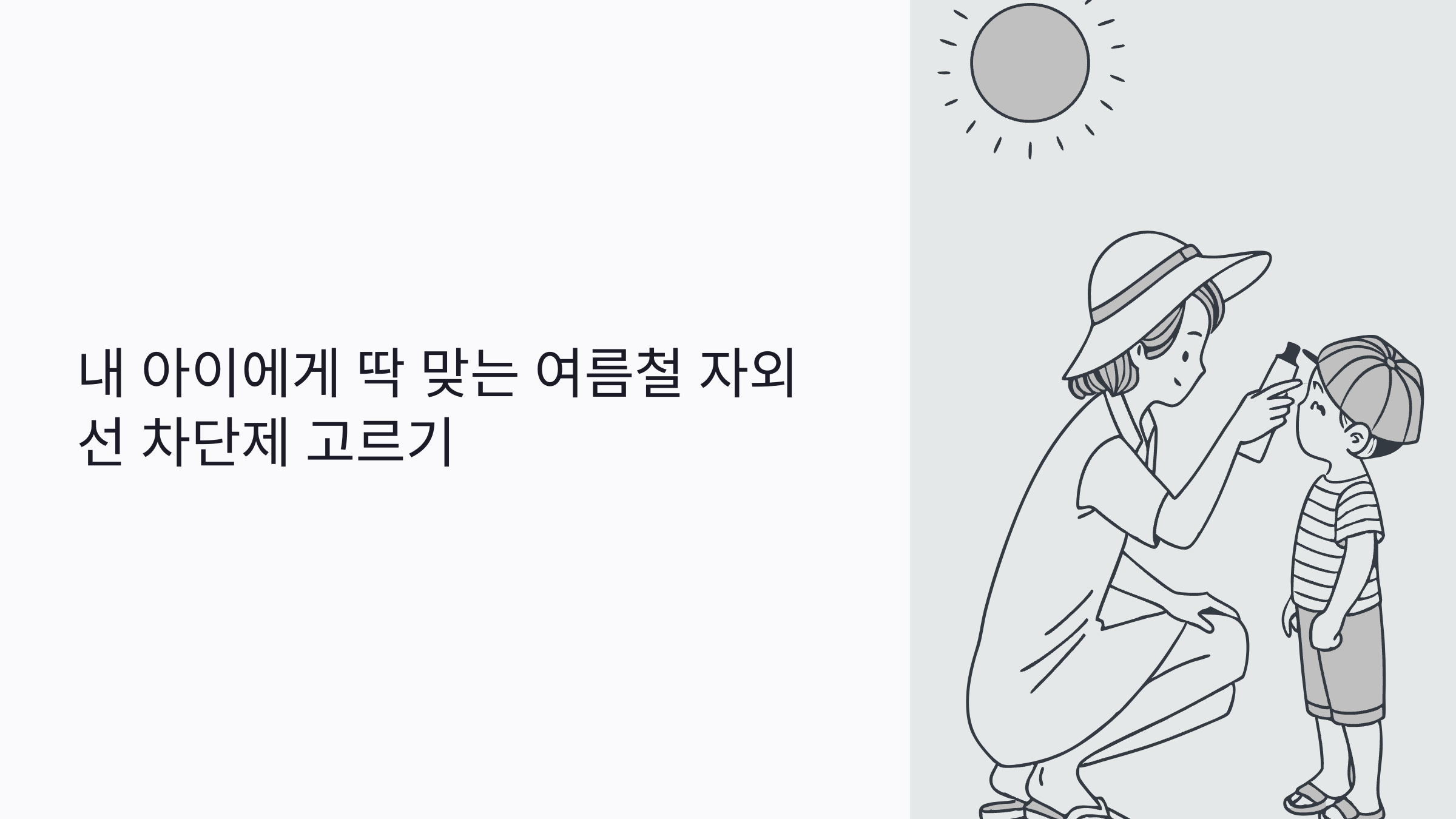 이제 이런 점들을 고려해서 우리 아이에게 맞는 자외선 차단제를 선택하면, 여름철 야외활동도 더 안전하고 즐겁게 보낼 수 있을 거예요!