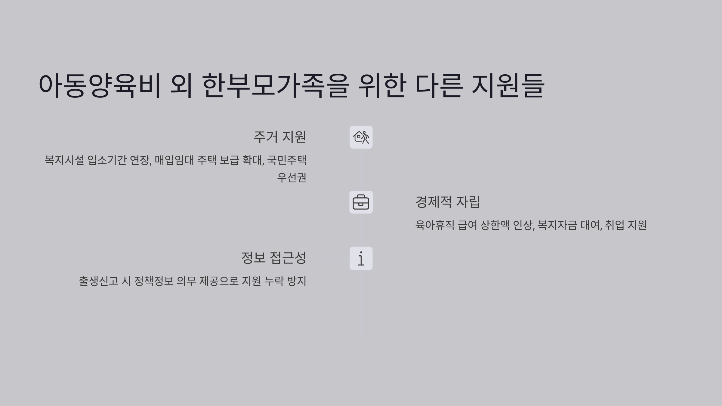 아동양육비 외에도 한부모가족을 위한 다양한 지원 정책이 있어요:
