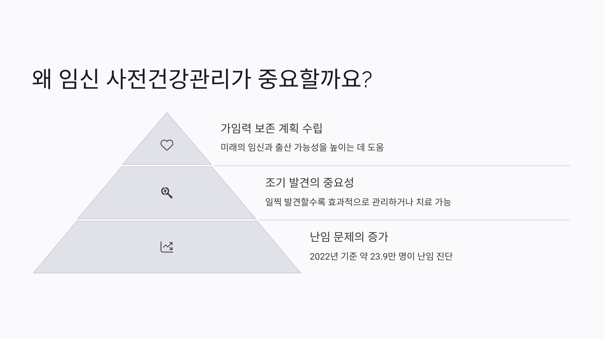난임이나 생식건강 문제는 조기에 발견할수록 효과적으로 관리하거나 치료할 수 있어요. 임신 사전건강관리는 문제가 있을 경우 일찍 발견하여 적절한 조치를 취할 수 있게 도와준답니다.