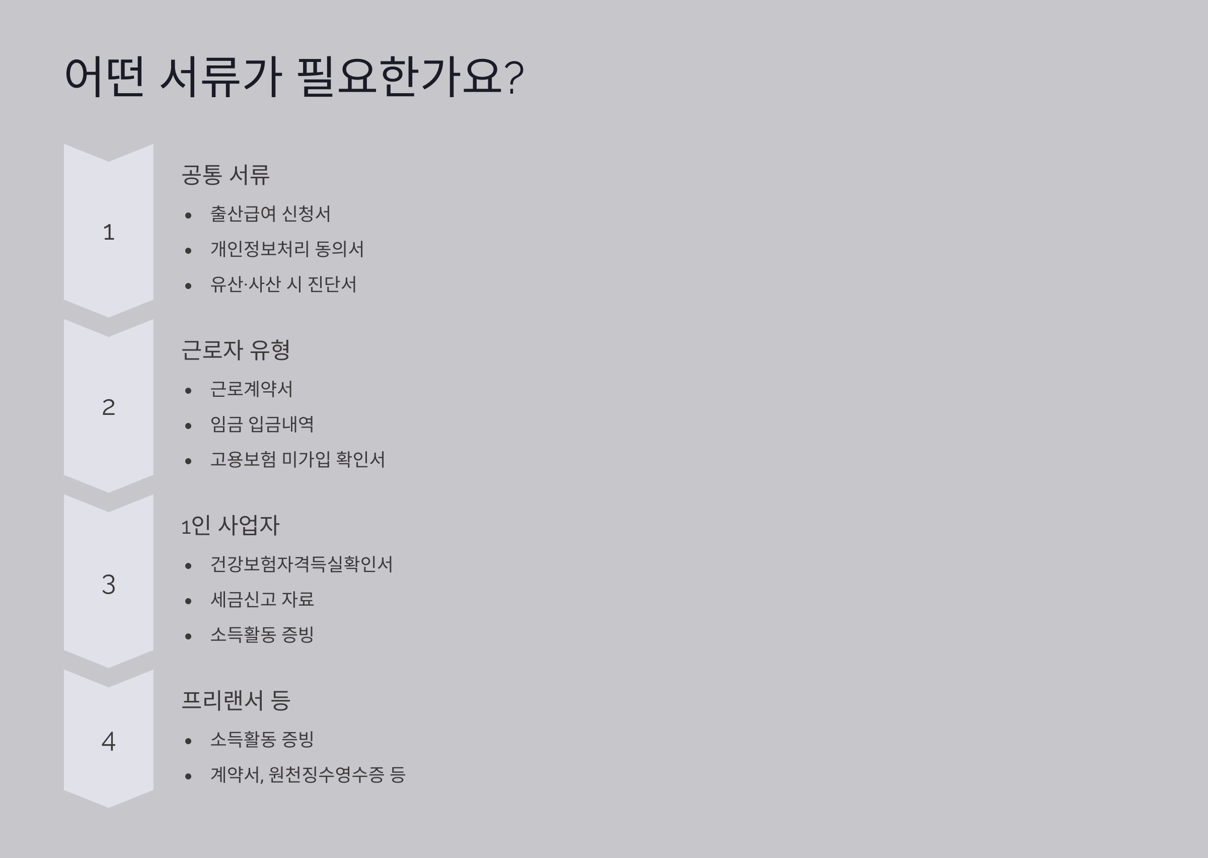 - 방법: 개인 → 출산휴가·육아휴직 → 출산휴가 → 고용보험 미적용자 출산(유산·사산) 급여 신청
