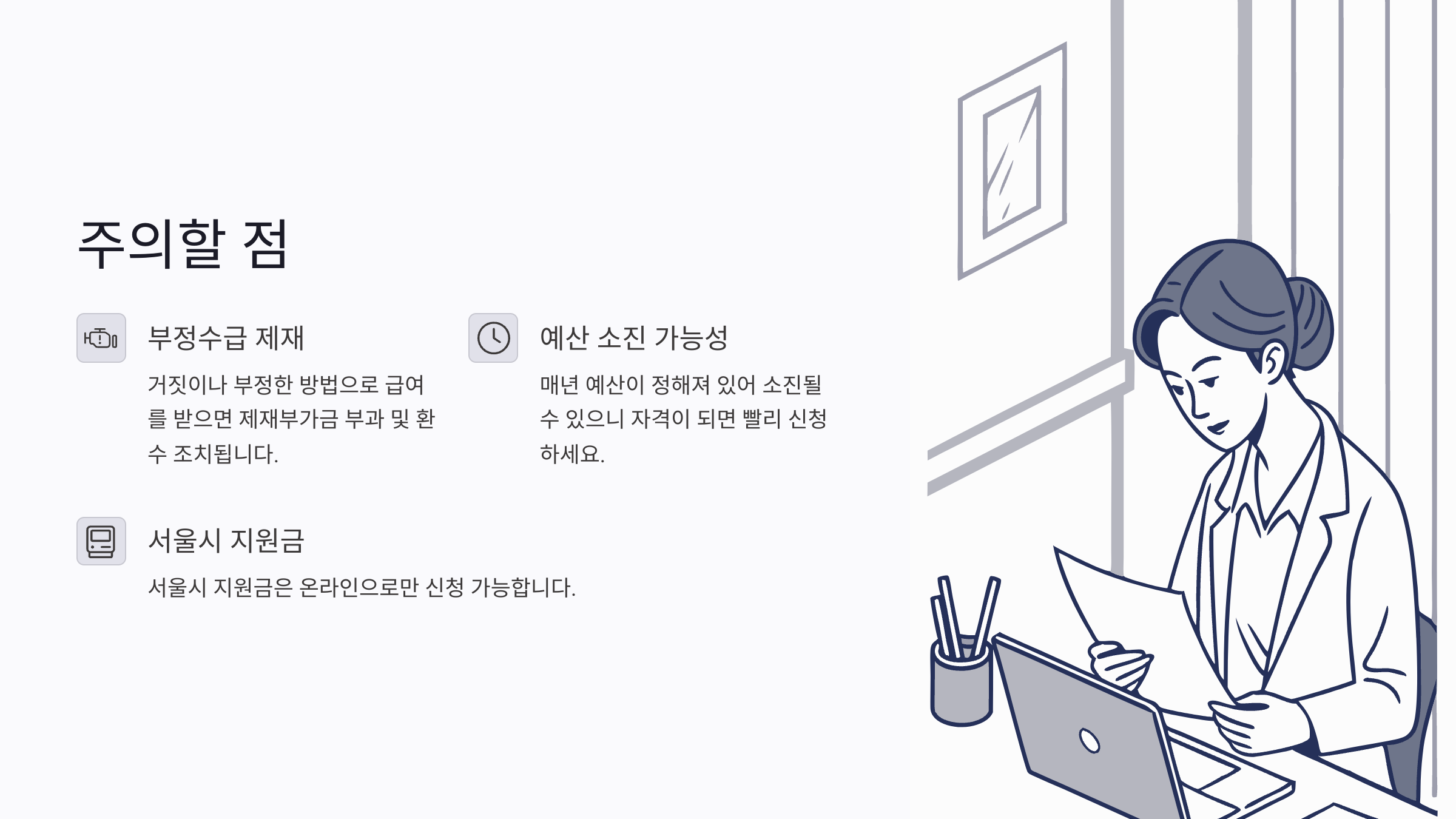 다만, 서울시 지원은 다음 조건을 모두 충족해야 해요: