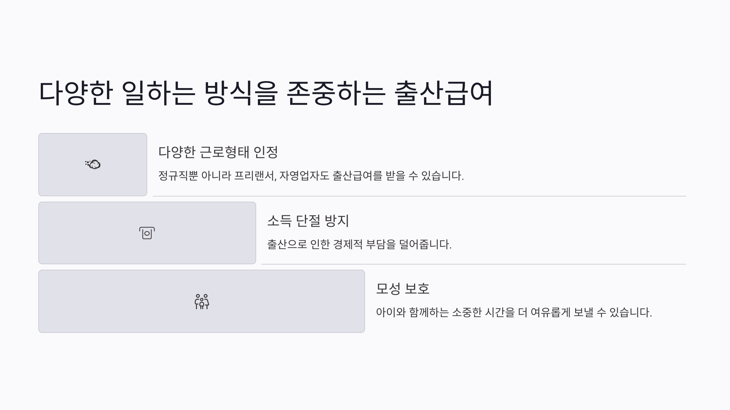 고용보험 미적용자 출산급여는 크게 세 가지 유형으로 나눌 수 있어요.