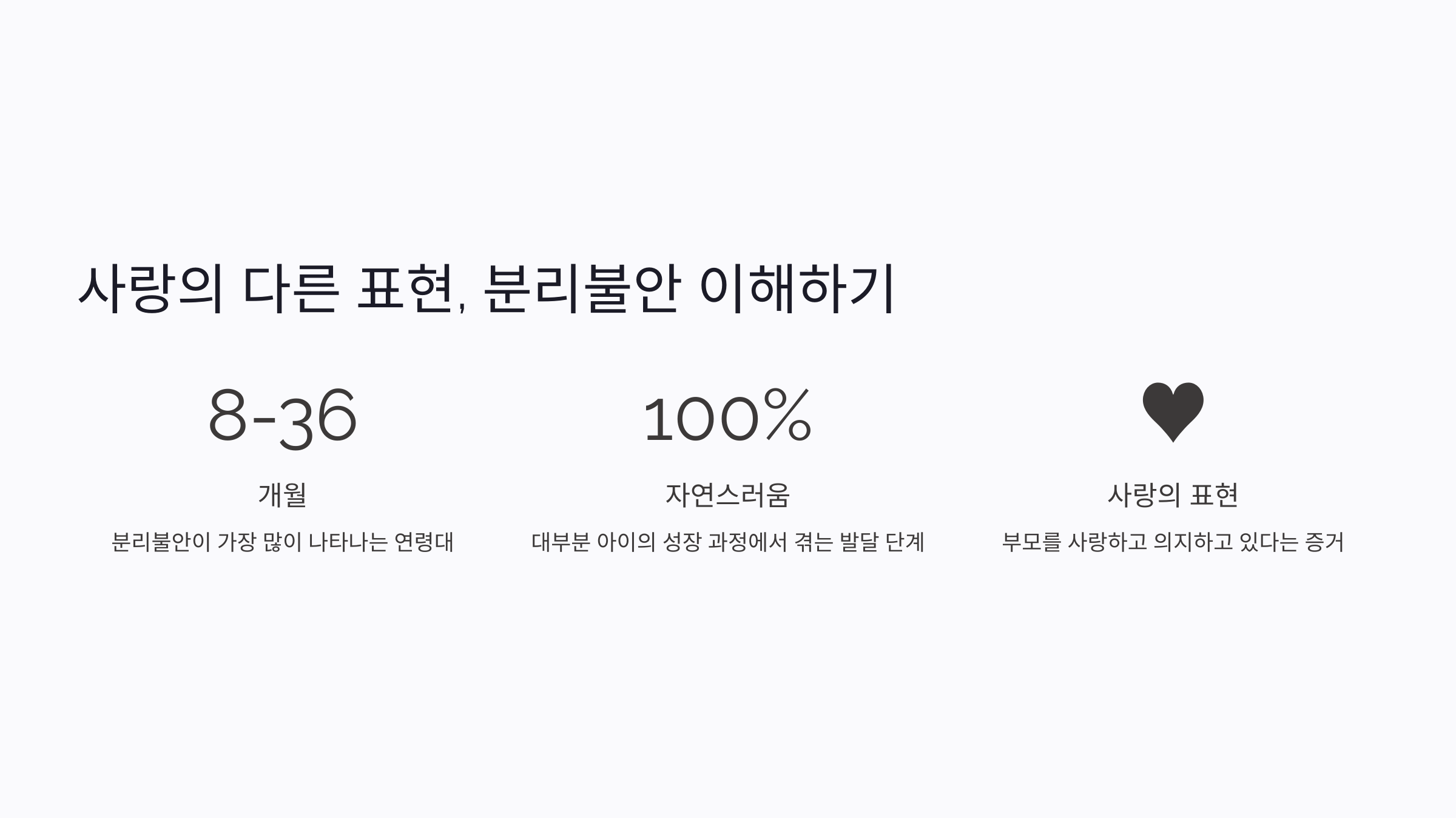 생각해보면 그럴 만도 해요. 아기가 태어나서 배고프거나 무섭거나 불편할 때마다 울음으로 표현하면 부모가 달려와 안아주고 달래주면서 형성된 애착 관계잖아요. 그런데 갑자기 그 안전기지인 부모가 사라지면 불안해하는 건 당연한 일이죠.