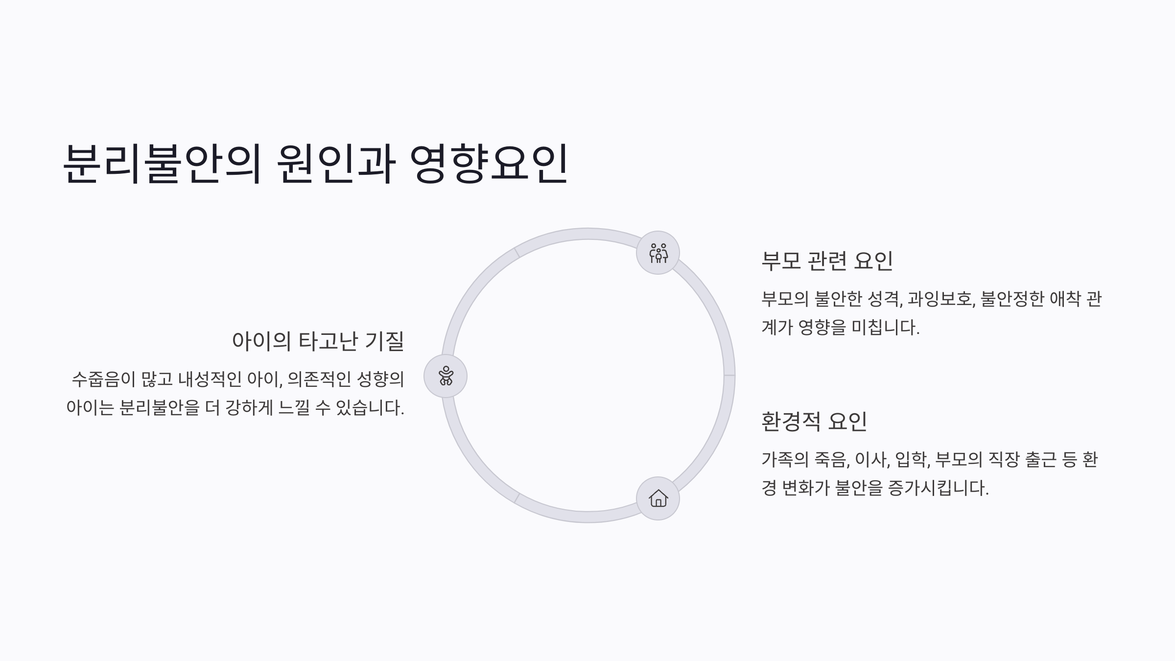 여러 환경적 요소도 아이의 분리불안에 영향을 줍니다: