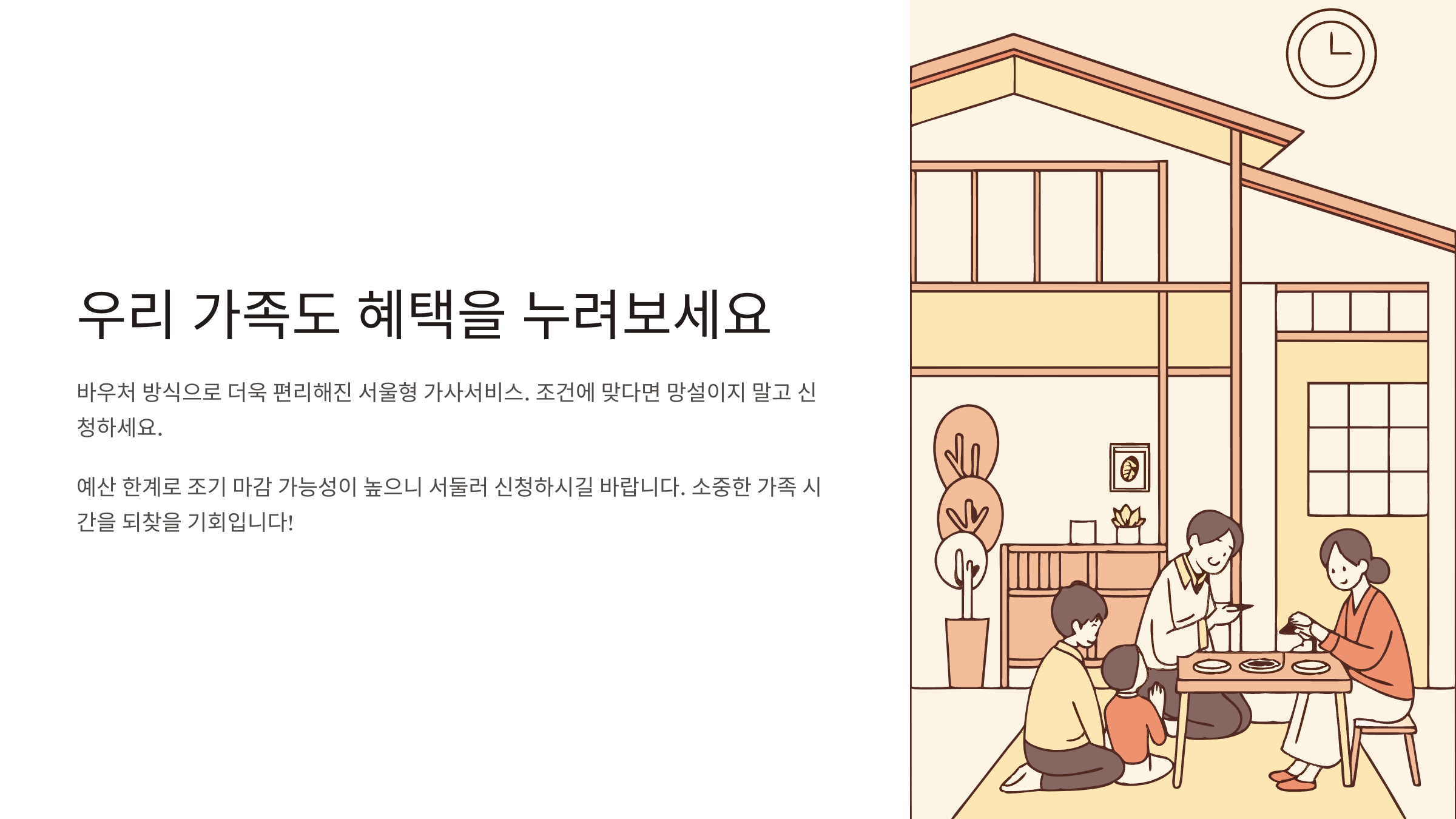 서울형 가사서비스는 서울시에서 가정의 행복을 위해 마련한 정말 좋은 제도예요. 2025년에는 바우처 방식으로 바뀌면서 훨씬 유연하고 편리하게 이용할 수 있게 되었고요.
