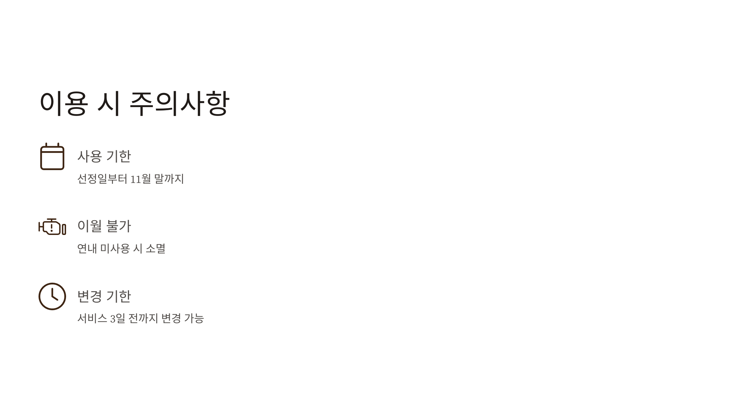 - 연내 소진하지 못한 서비스는 이월되지 않고 소멸되니 주의하세요