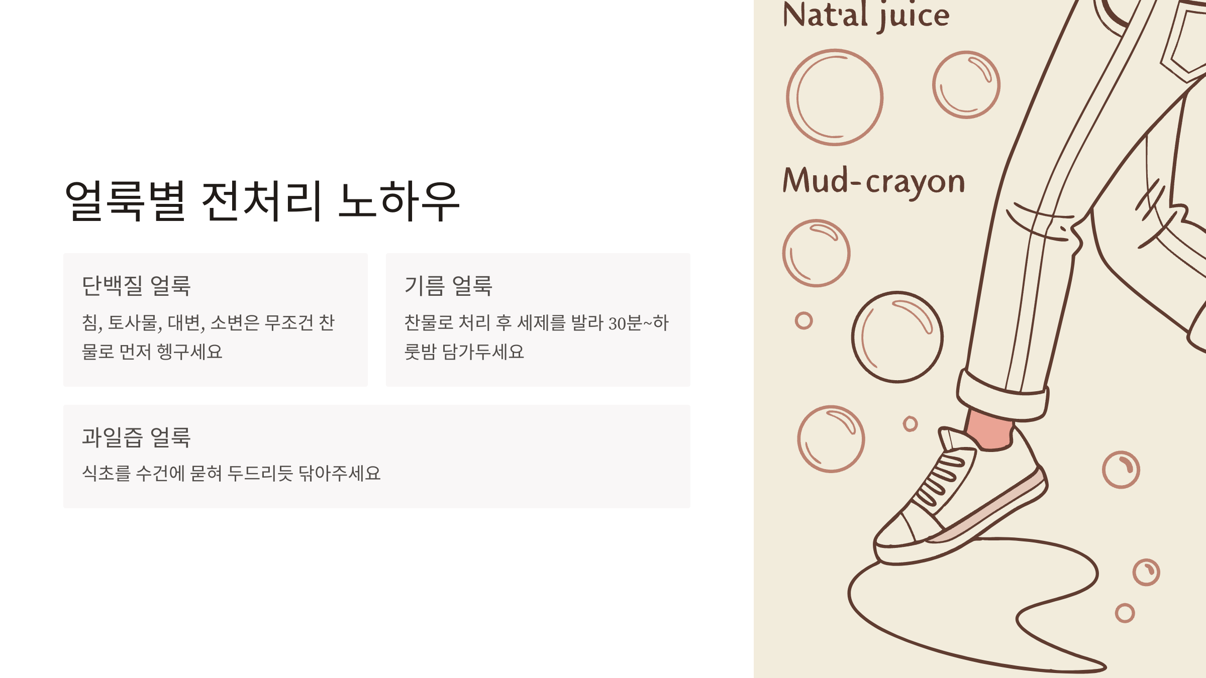 여름철에는 다양한 얼룩이 생기기 쉬워요. 얼룩 종류별로 대처법을 알아두시면 도움이 될 거예요.