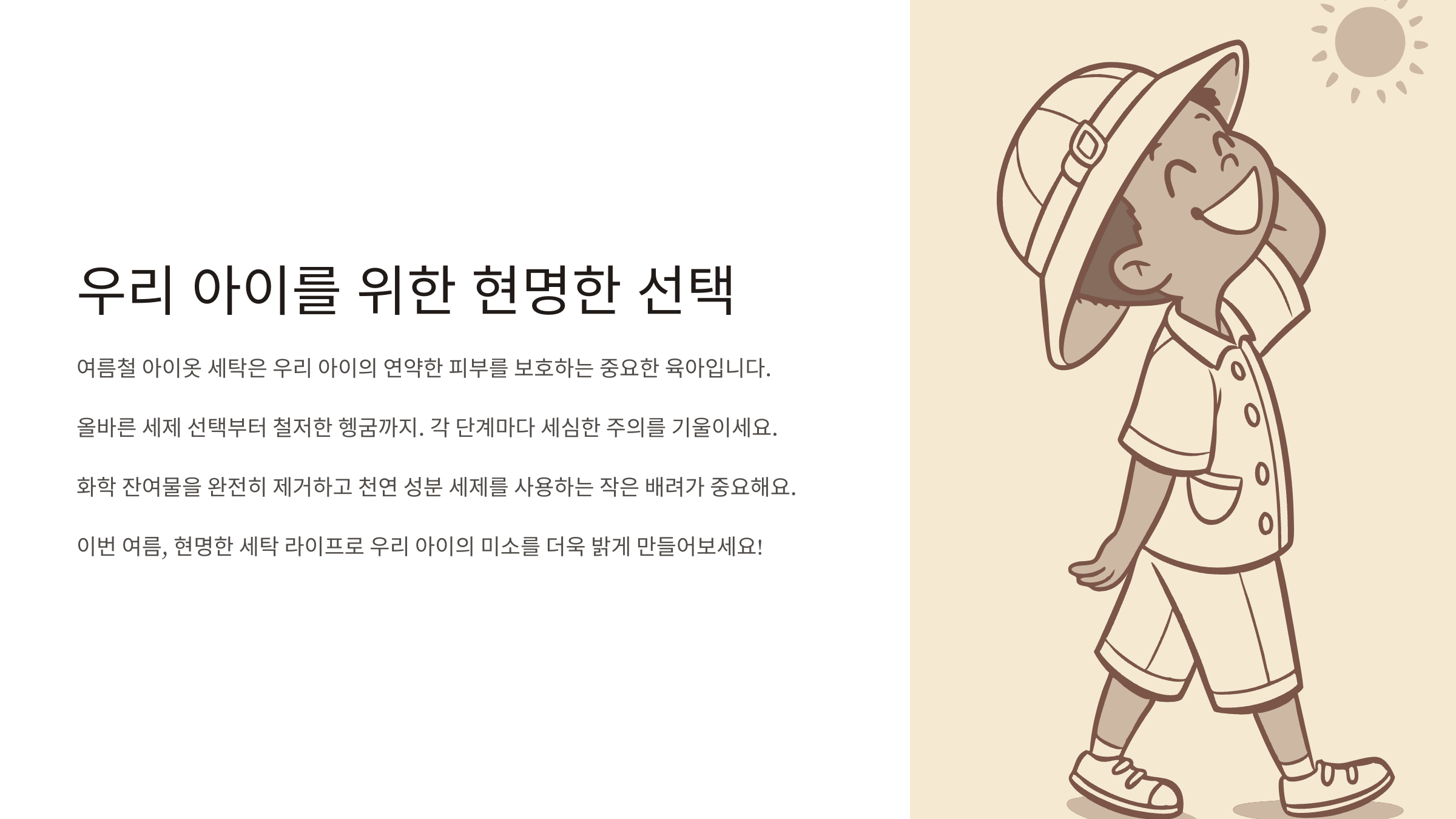 이번 여름, 이 가이드와 함께 현명한 세탁 라이프를 시작해보세요. 우리 아이의 미소가 더욱 밝아질 거예요!
