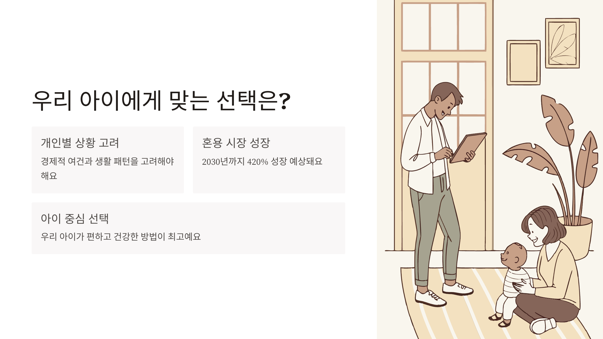 요즘 트렌드를 보면 2030년까지 혼용 시스템 시장이 420%나 성장할 것으로 예상된다고 해요. 이는 많은 부모들이 상황에 맞게 유연하게 선택하고 있다는 뜻이겠죠.
