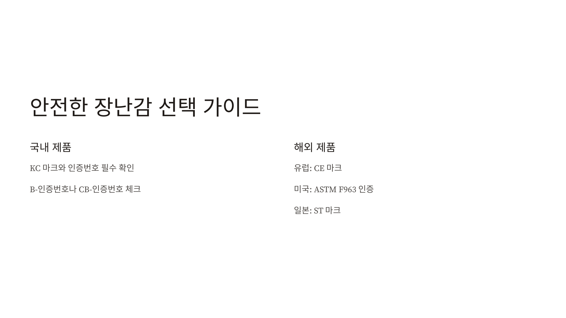 어린이 장난감 안전은 타협할 수 없는 부분이에요. 저렴한 가격에 현혹되지 말고, 반드시 안전 인증을 받은 제품을 선택해주세요.
