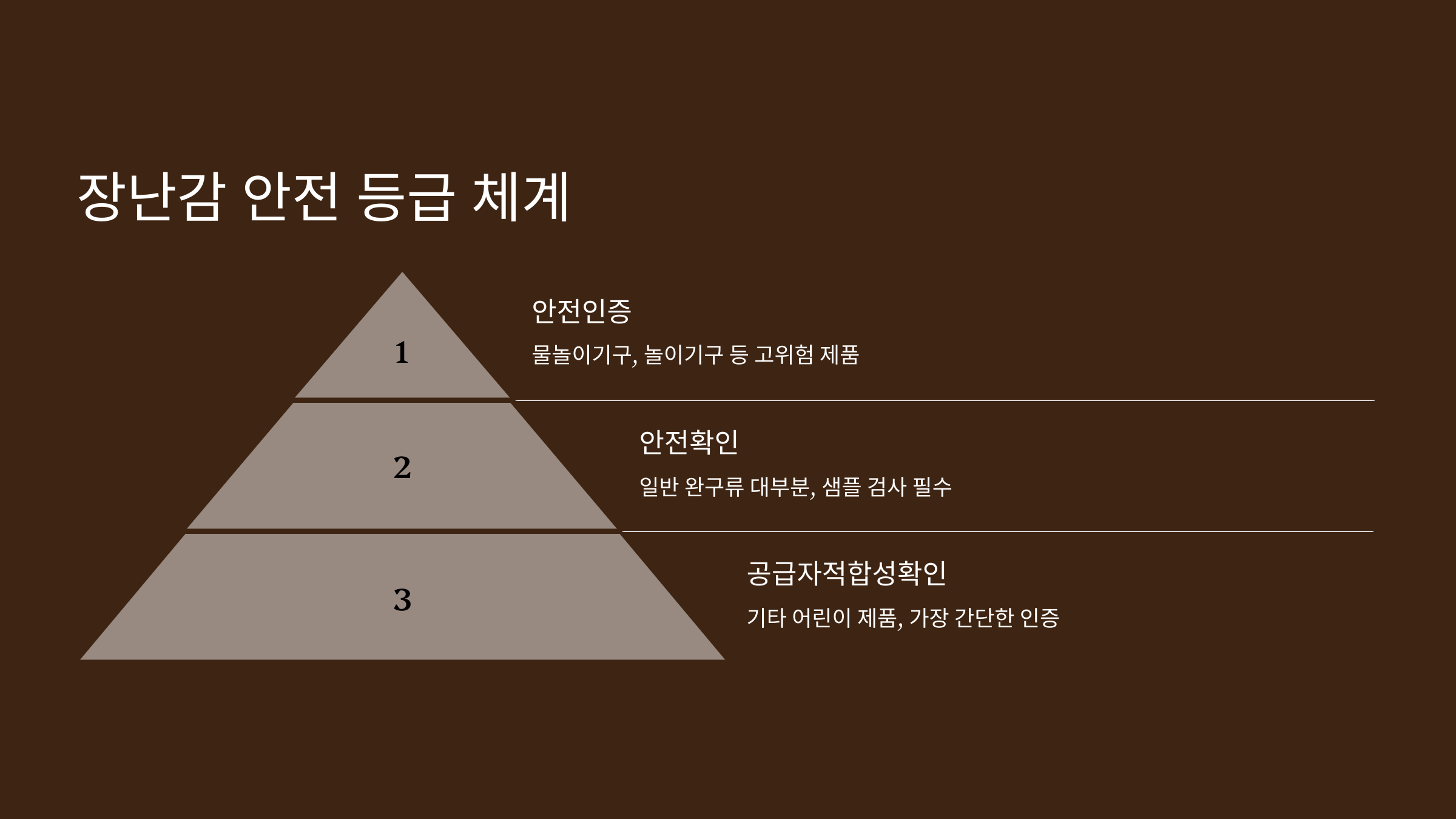어린이용 완구는 위험도에 따라 세 가지 등급으로 나뉩니다: