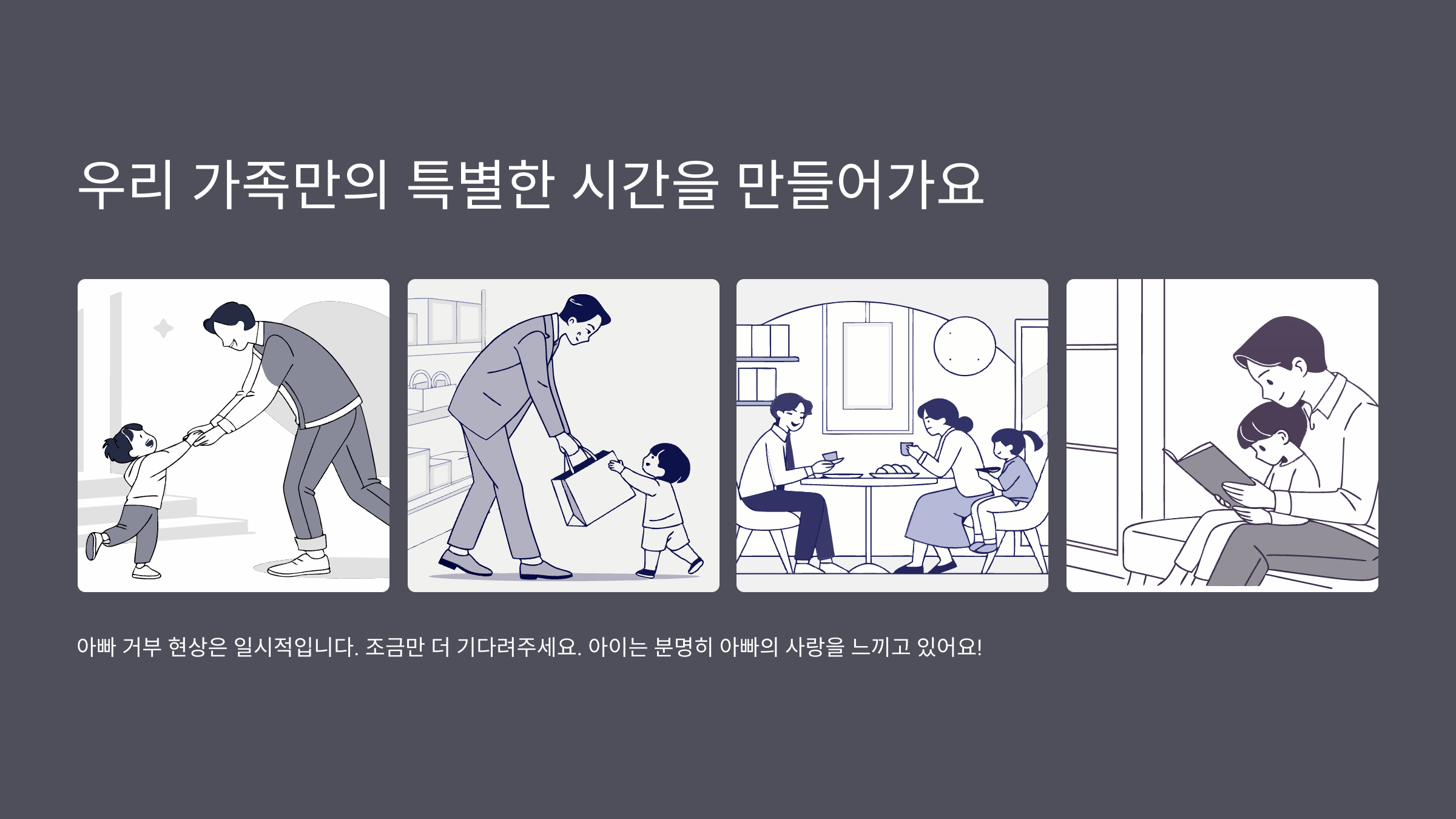 아빠 거부 현상은 일시적인 거예요. 이 시기를 슬기롭게 넘기고 나면 오히려 더 단단한 부자 관계, 가족 관계를 만들 수 있답니다. 아이의 발달 과정을 이해하고, 아빠만의 방법으로 사랑을 표현하며, 가족 모두가 함께 이 시기를 헤쳐나가시길 바라요.