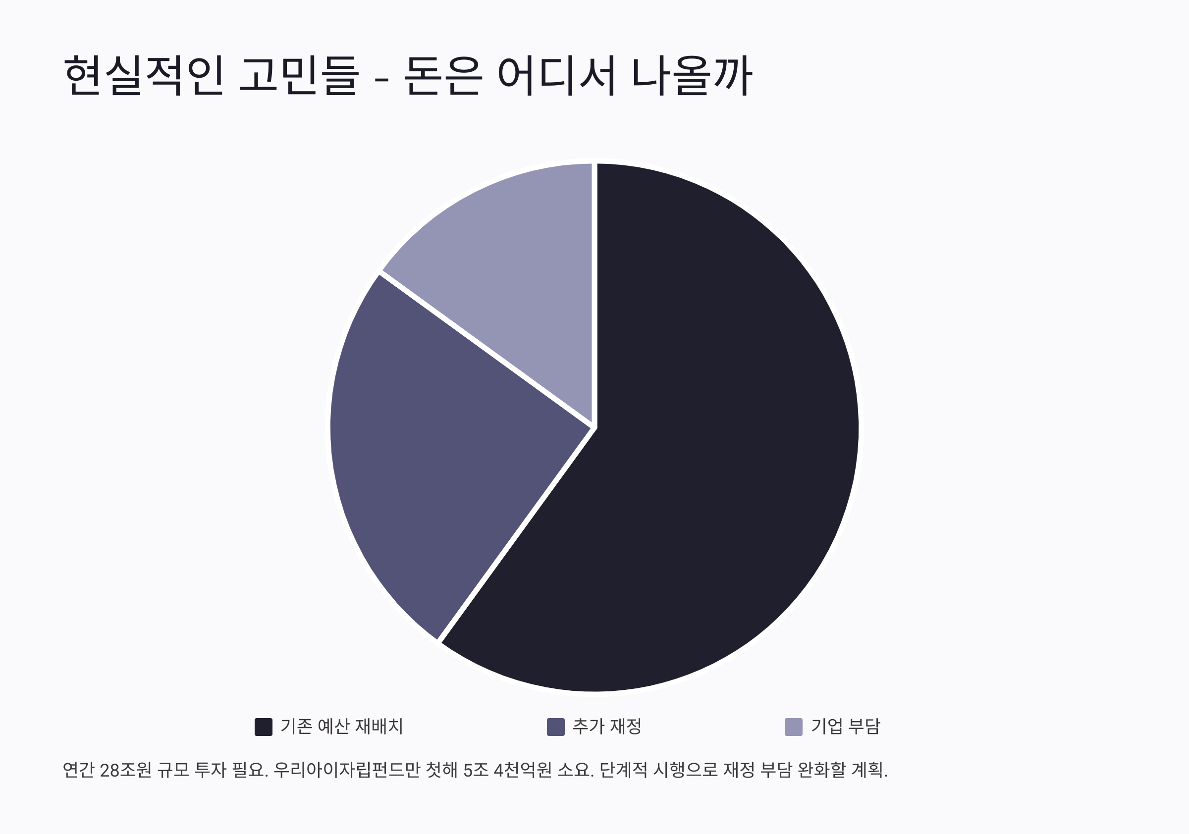 물론 이런 정책들을 시행하려면 엄청난 돈이 들어가겠죠? 전문가들은 연간 28조원 정도가 필요할 거라고 추정하고 있어요. 우리아이자립펀드만 해도 첫해에 5조 4천억원이 든다고 하니까요.