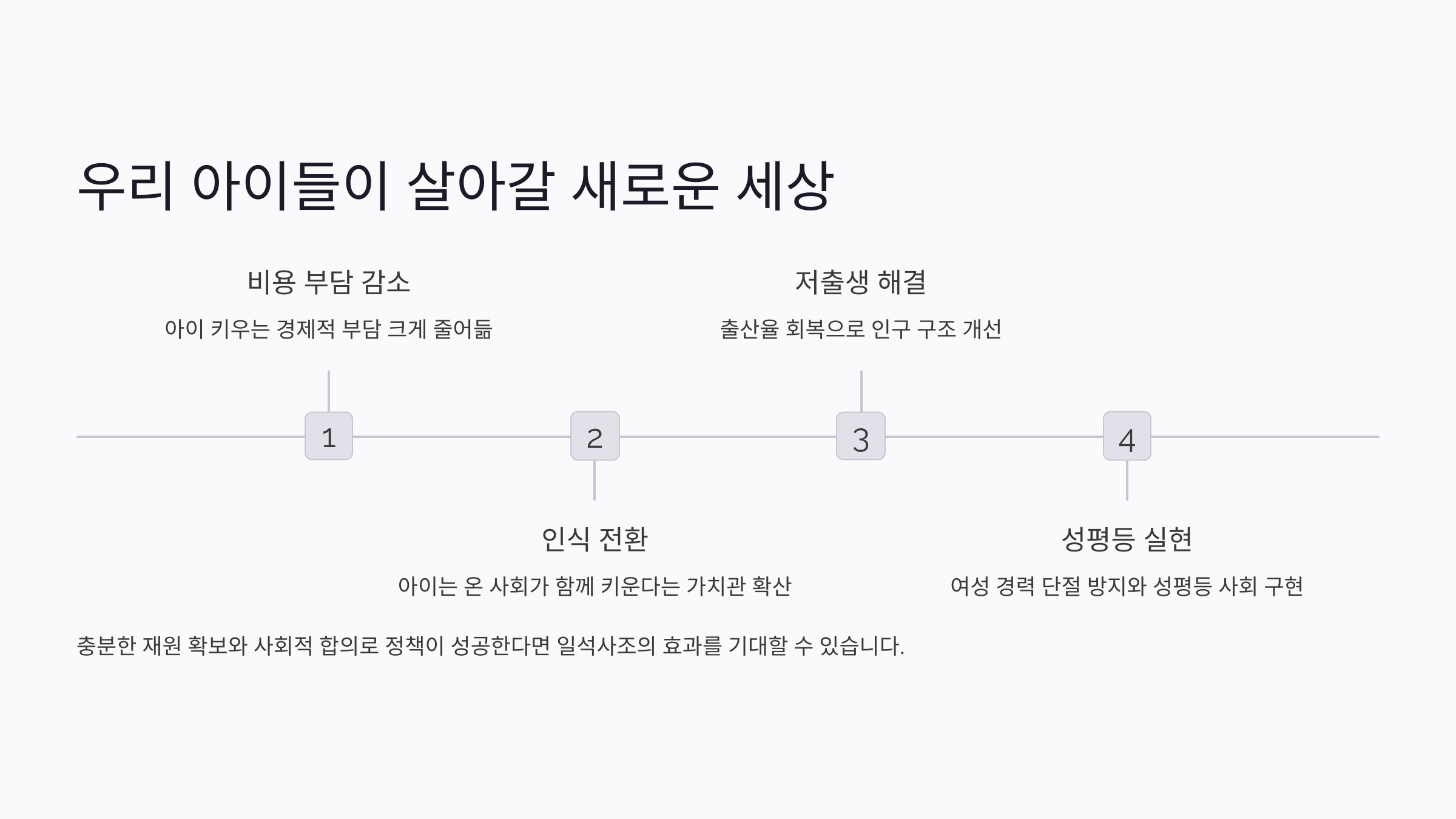 물론 정책이 성공하려면 충분한 재원 확보와 사회적 합의가 필요하겠지만, 적어도 방향은 확실히 잡혔다는 생각이 들어요. 저출생 문제를 해결하고, 육아 부담을 줄이고, 여성의 경력 단절도 방지하고, 성평등도 실현하는 일석사조의 효과를 기대해볼 수 있을 것 같네요.