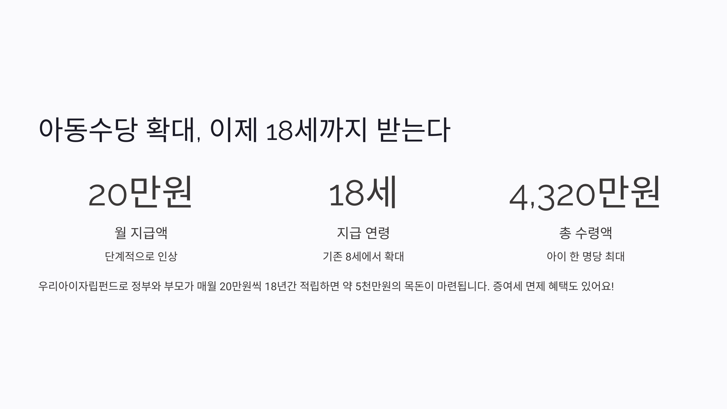 월 10만원에서 20만원까지, 지급 연령도 18세까지