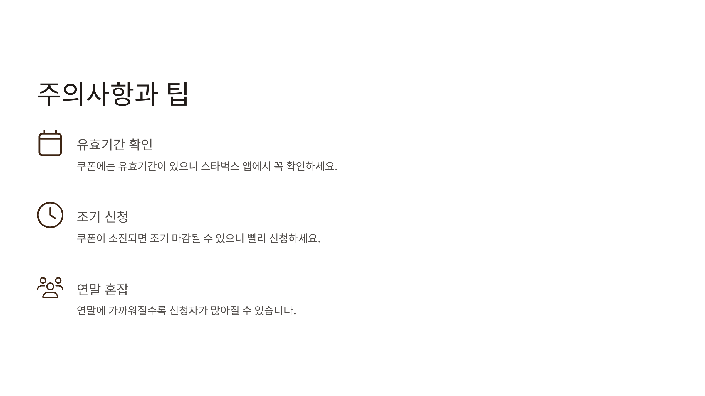 쿠폰에는 유효기간이 있으니까 스타벅스 앱에서 꼭 확인해보세요. 보통 몇 개월의 여유가 있지만, 받자마자 확인하는 습관을 들이시는 게 좋아요.