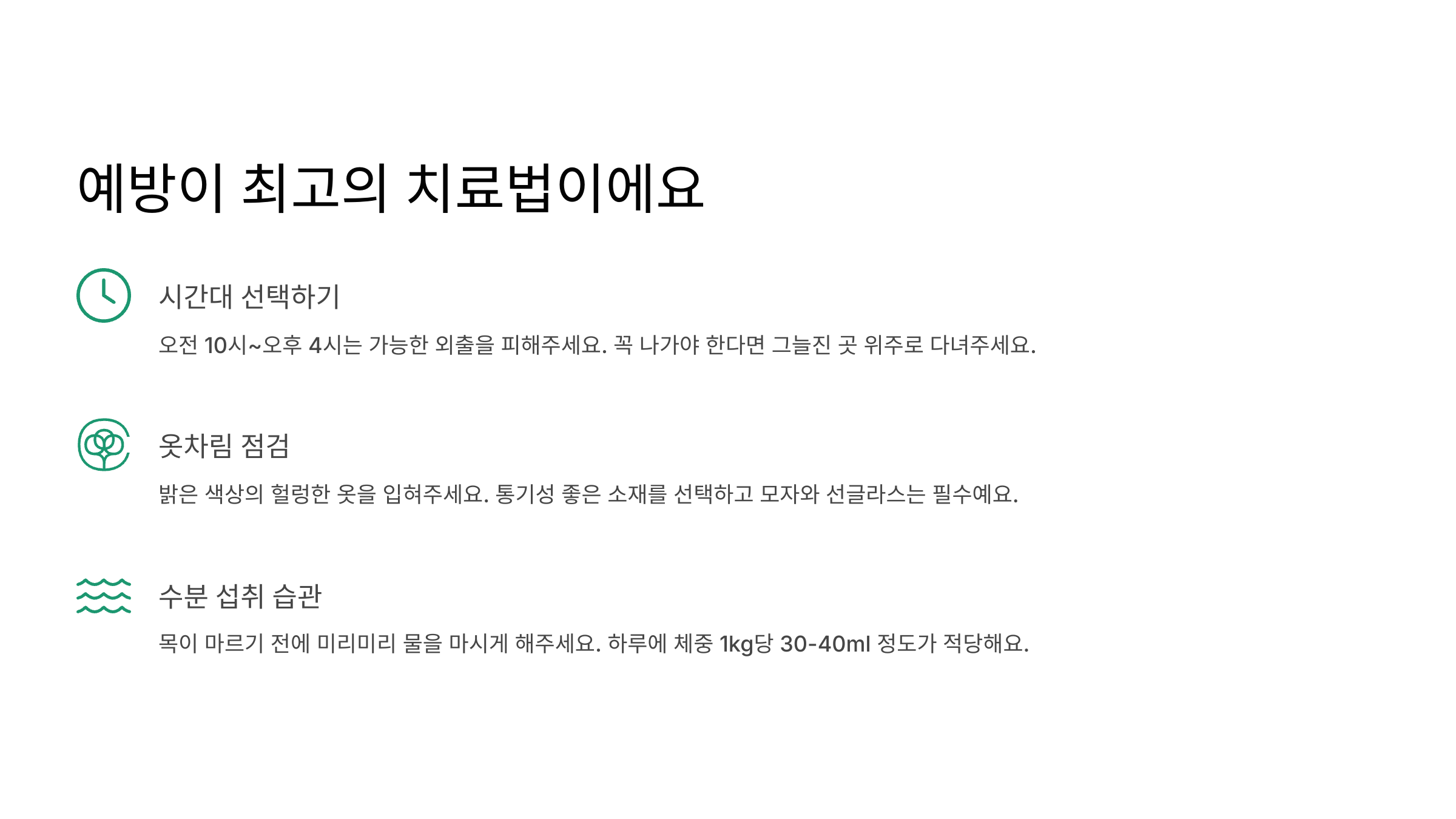 - 꼭 나가야 한다면 그늘진 곳 위주로 다녀주세요