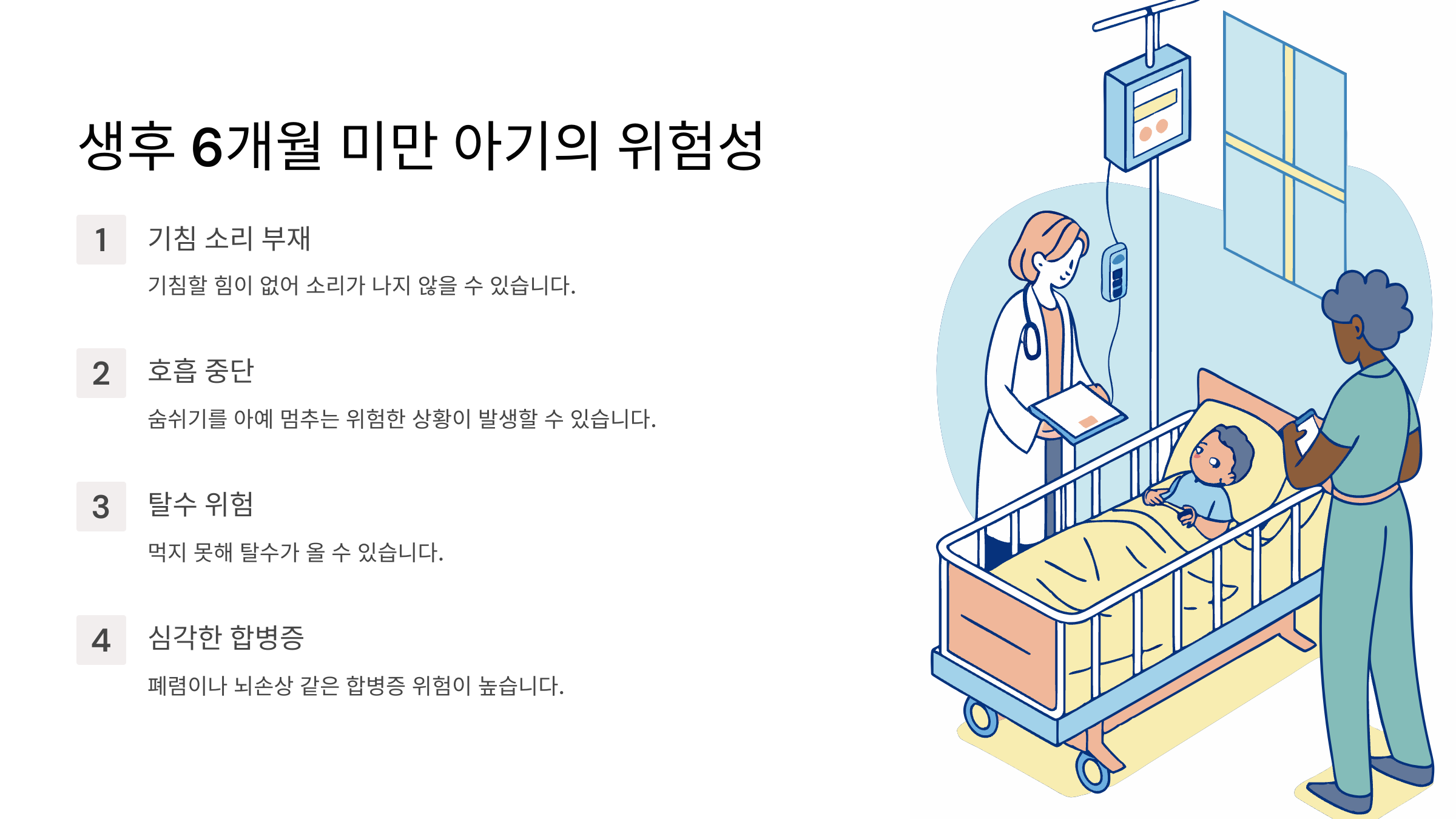 특히 생후 6개월 미만의 아기들에게는 정말 위험할 수 있어서, 부모님들이 꼭 알아두셔야 하는 질병 중 하나예요.