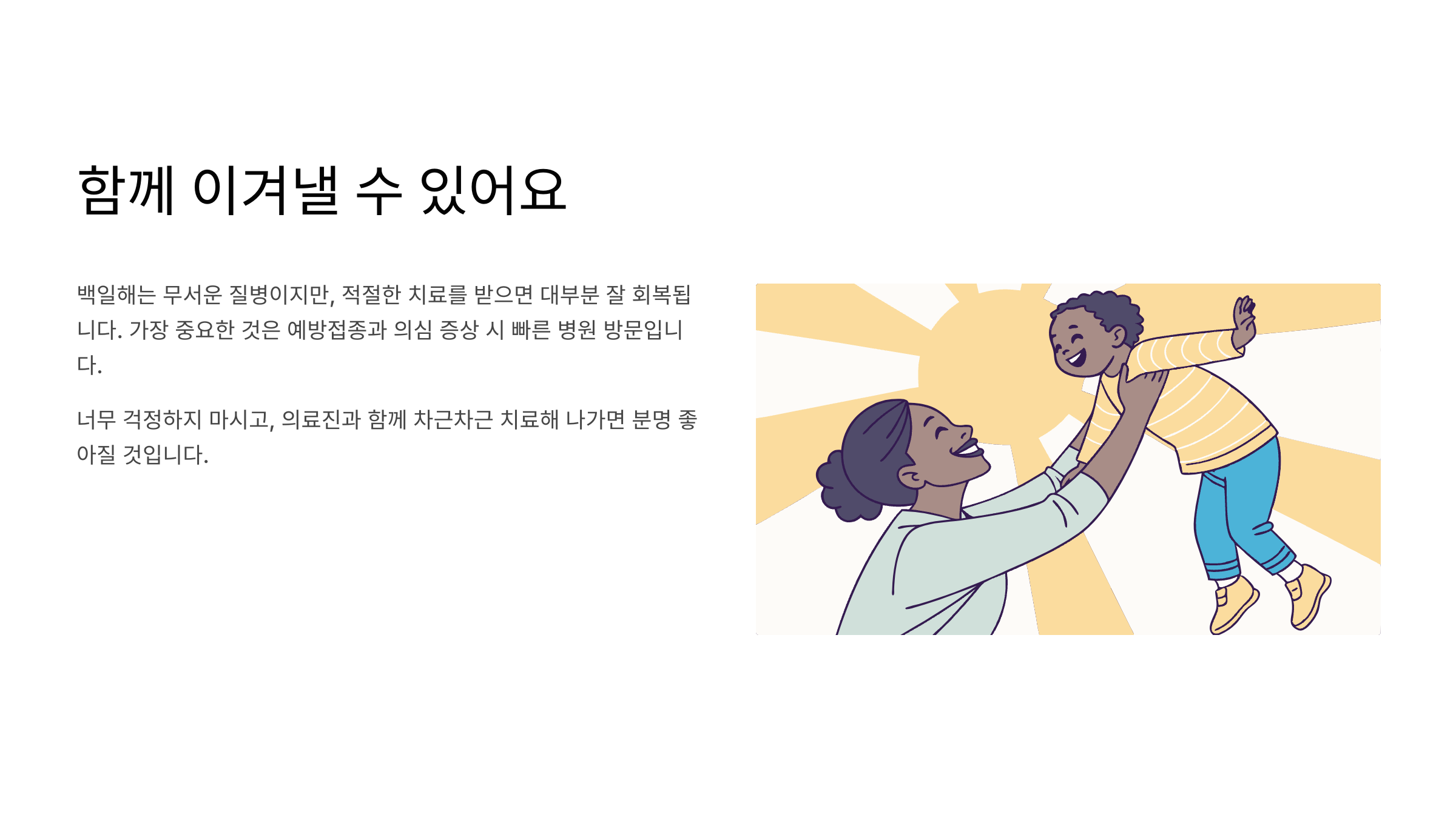 백일해는 분명 무서운 질병이지만, 요즘은 의학이 발달해서 적절한 치료를 받으면 대부분 잘 회복돼요. 가장 중요한 건 예방접종을 제때 맞히는 것과, 의심 증상이 있을 때 빨리 병원에 가는 거예요.